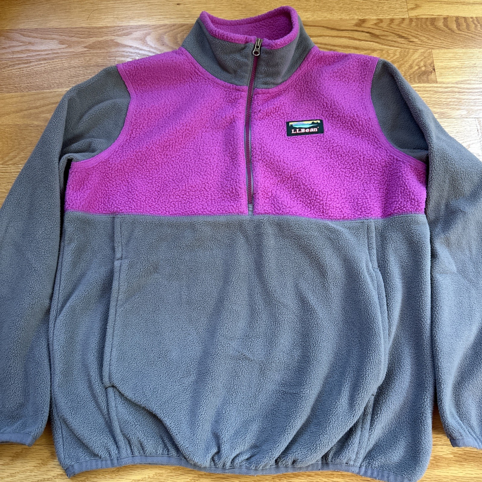 L.L. Bean Half Zip Fleece Pullover Kid Youth Medium 10-12 pink grey girls