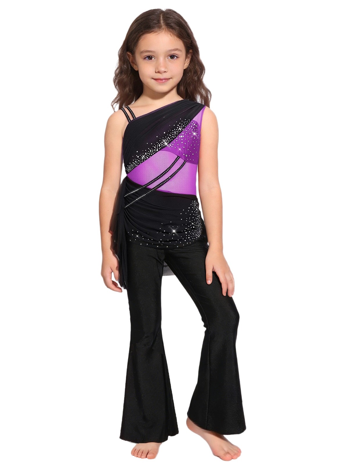 как выглядит Kids Girls Bodysuit Lyrical Jumpsuit Performance Dancewear Overlay Color Block фото