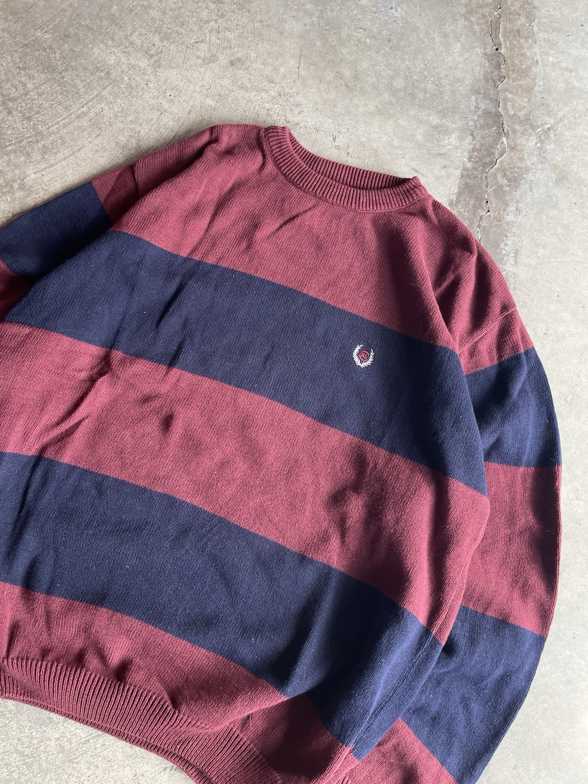как выглядит Chaps Ralph Lauren Crew Neck Sweater XL Mens Striped Maroon Navy Cotton Made USA фото