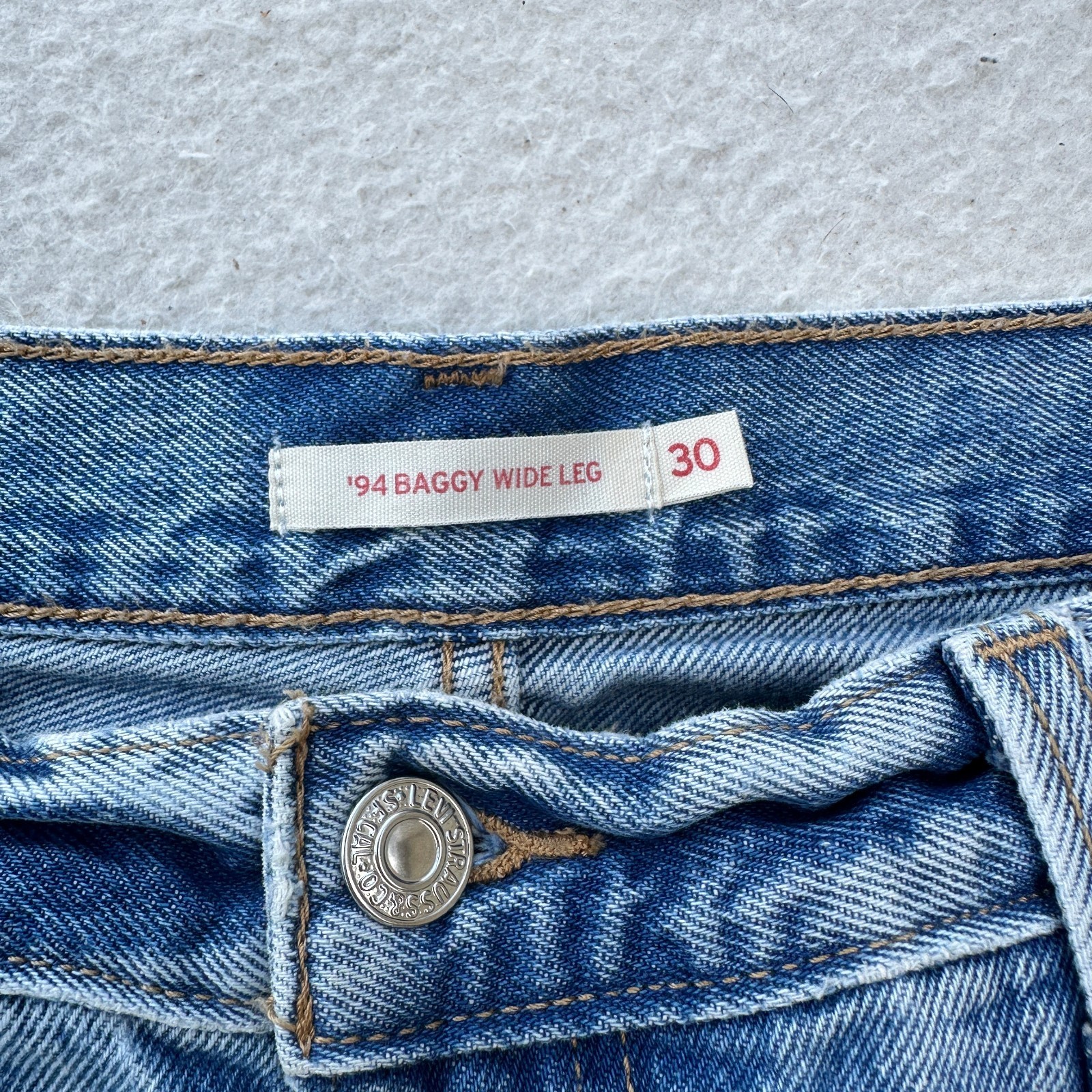 как выглядит Levis 94 Baggy Wide Leg Jeans Womens Size 30 Blue Relaxed Denim Distressed фото