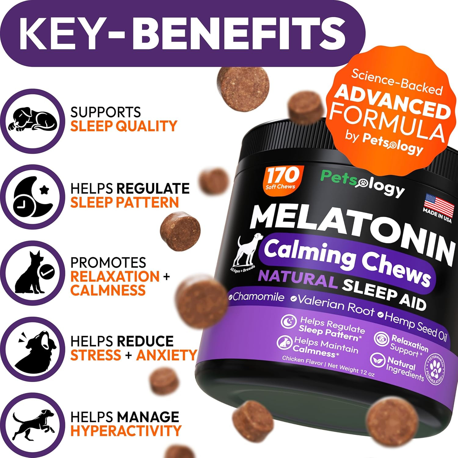 Advanced Melatonin for Dogs - 170 Dog Melatonin Calming Chews for Small and Larg
