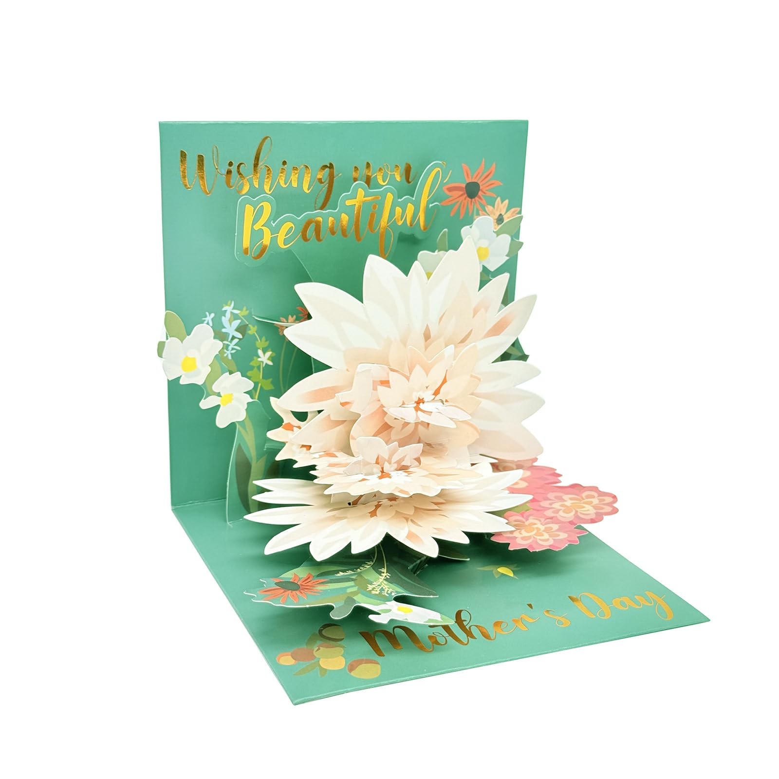 как выглядит Pop Up Happy Mothers Day Card, 3D Flowers Blessing Cards for Mom, Mother in L... фото