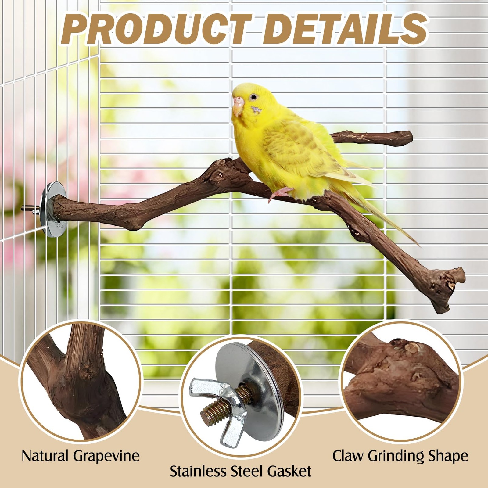 Natural Parrot Perch Grape Wood Bird Stand Pole Parakeet Paw Grinding Fork Ch...