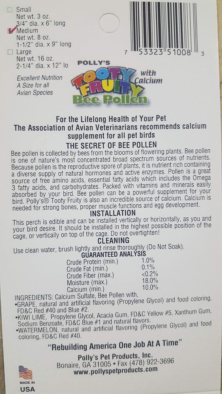 Tooty Fruity Pollen Bird Perch, Medium Assorted Flavor