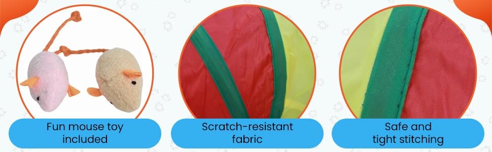 Cat Toys - 4-Way Tunnel for Indoor Cats with Peek Hole 2 Mice - Large Folda...