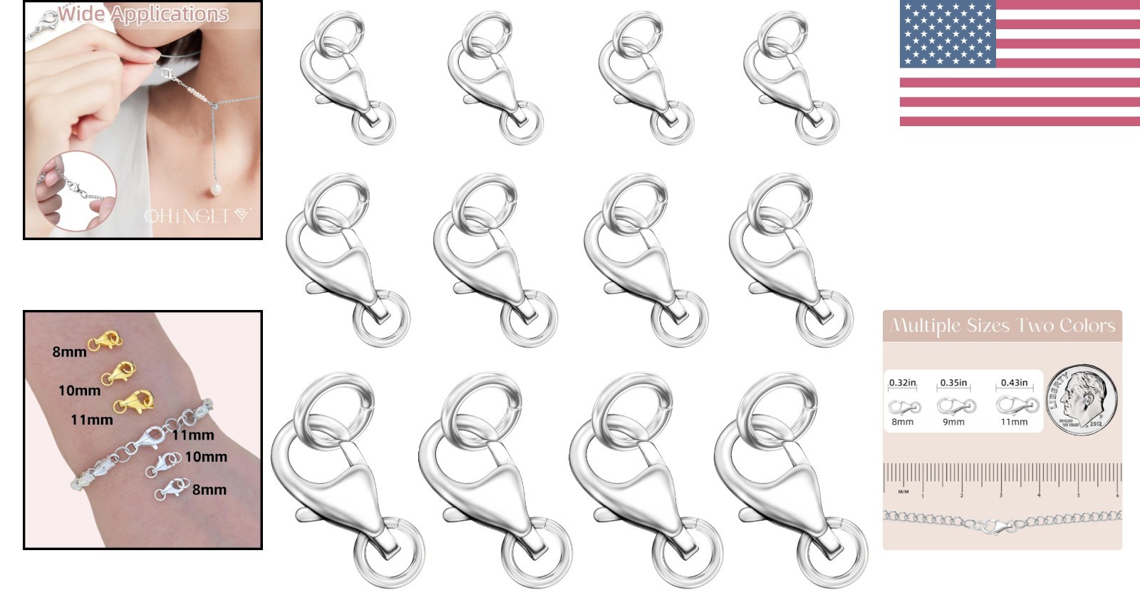 как выглядит Versatile 12PCS Lobster Claw Clasps in Silver - Ideal for Necklaces Bracelets фото