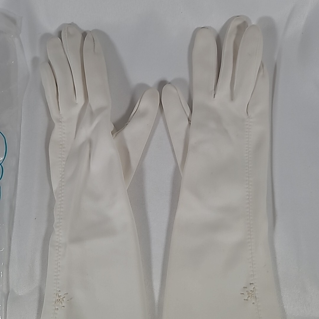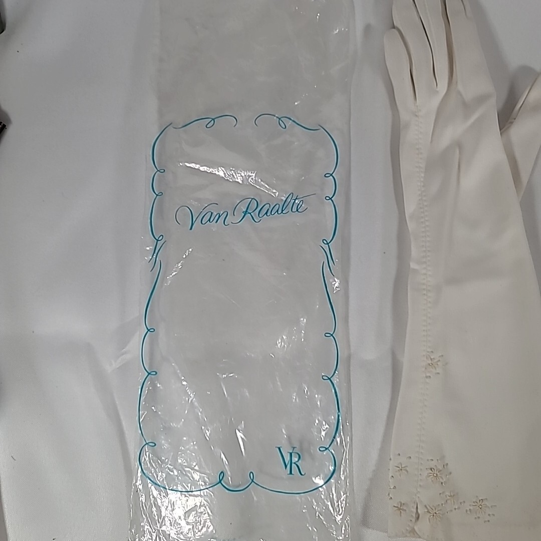 Vintage Raalte Women's Cloth Gloves Ivory Embroidered Mid-Arm Length Formal Wedd