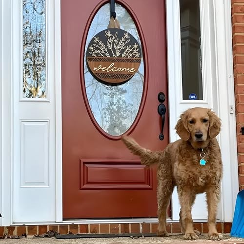 3D Welcome Sign for Front Door, Rustic Round Wood Wreaths Wall Hanging Modern