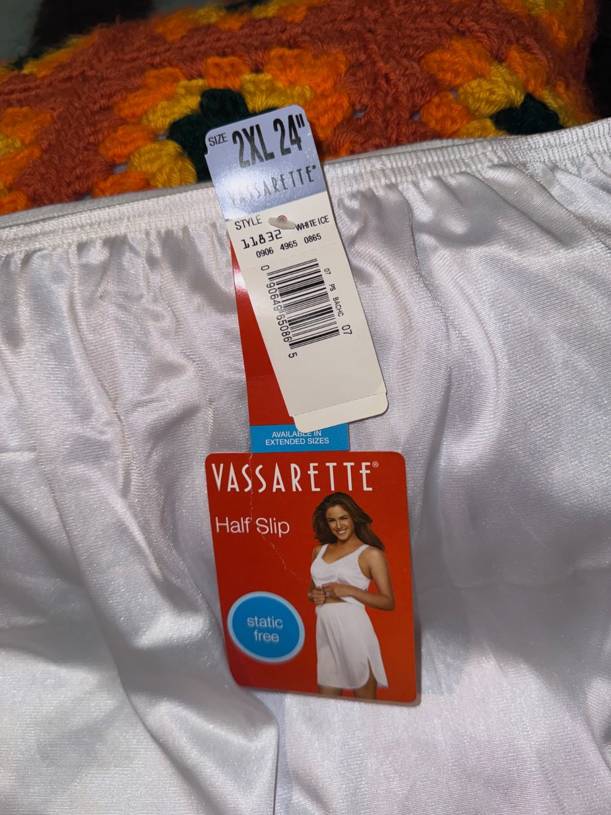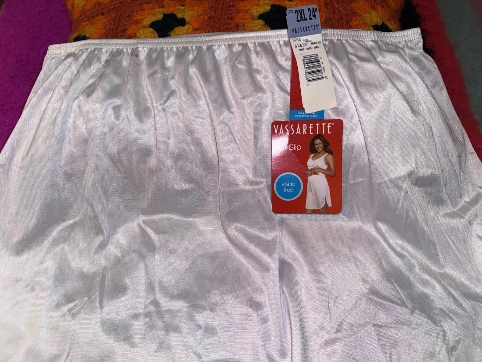 Vassarette White Half Slip Sz 2XL Elastic Waist Slit Nylon Lace Hem 24 NWT