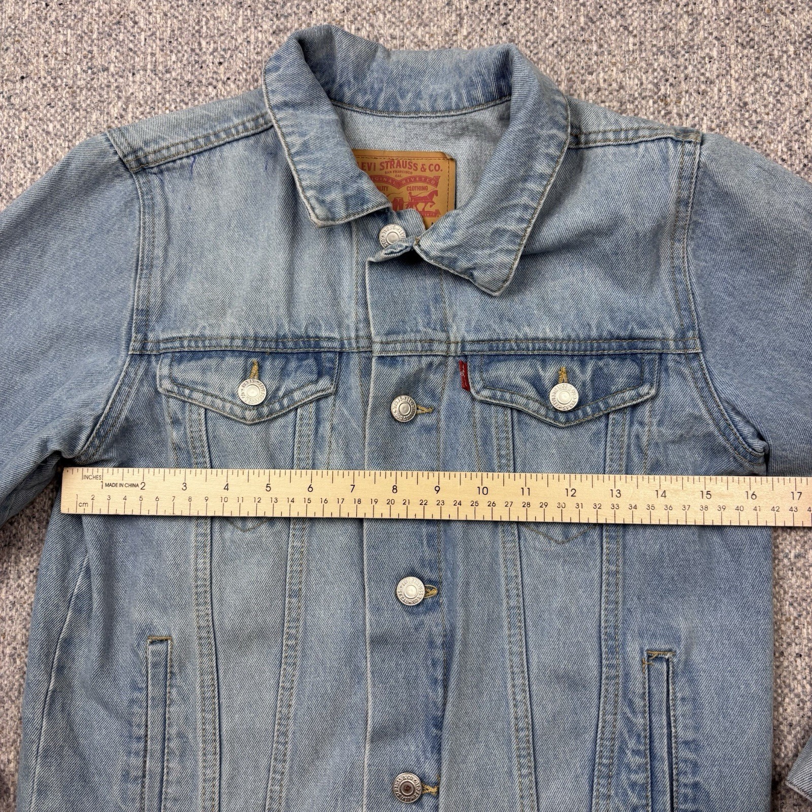 как выглядит Levis Denim Jacket Youth M Light Wash Trucker Jean Jacket Classic Red Tab фото