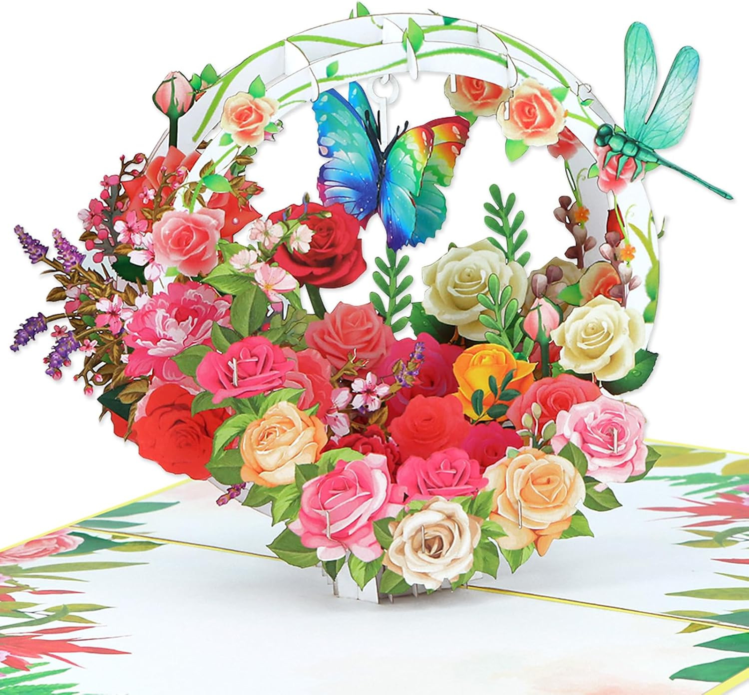 3D Pop-Up Butterfly Flower Mother's Day Card with Envelope for Women