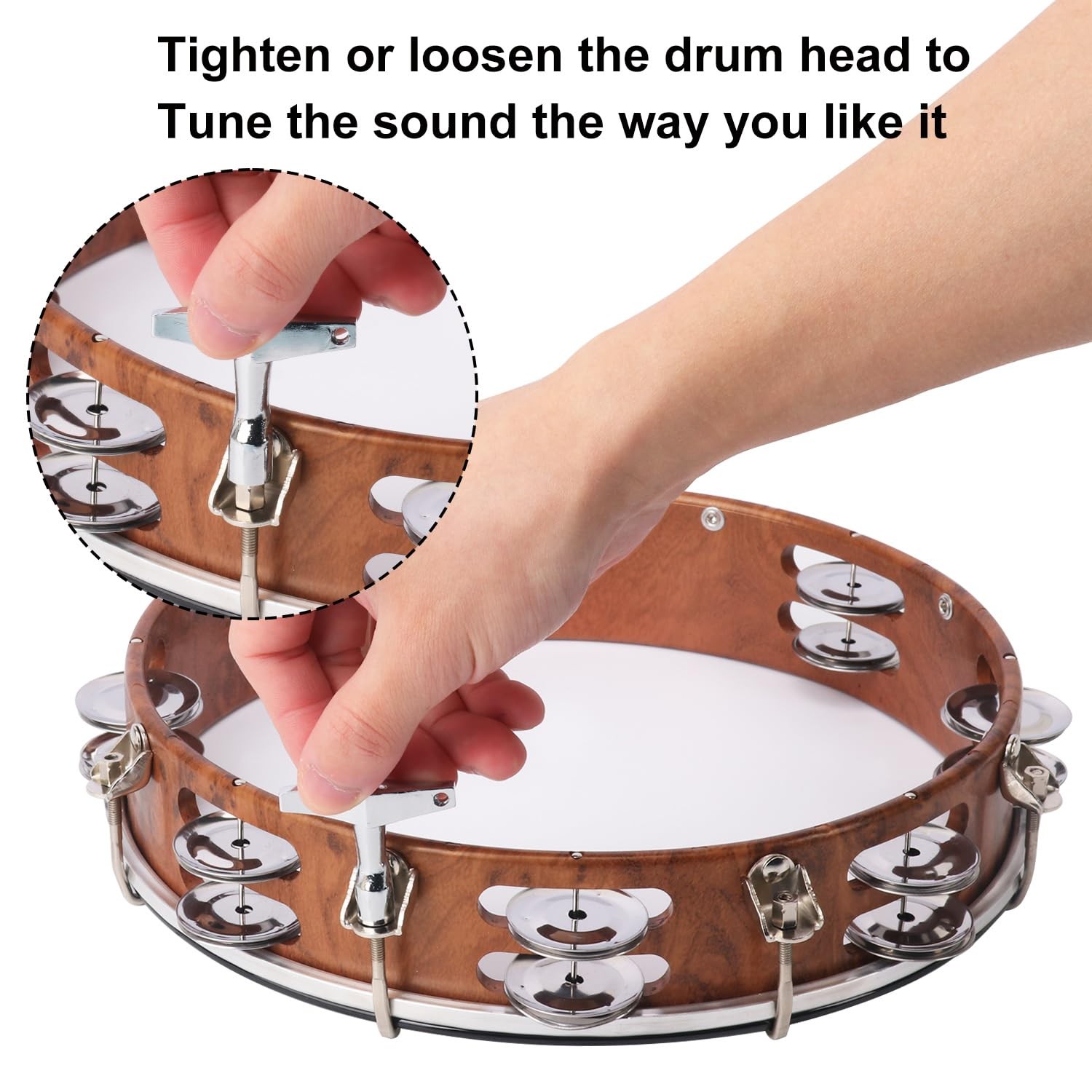 как выглядит 10 Inch Tambourine for Adults, Musical Percussion Instrument Drum with Double... фото