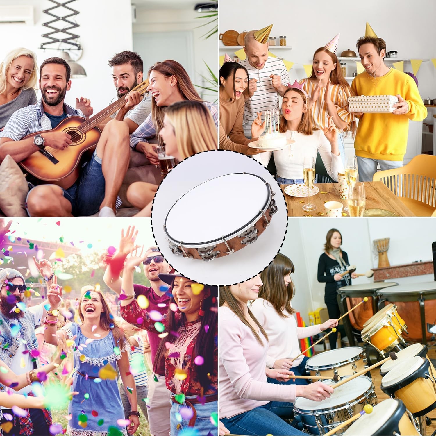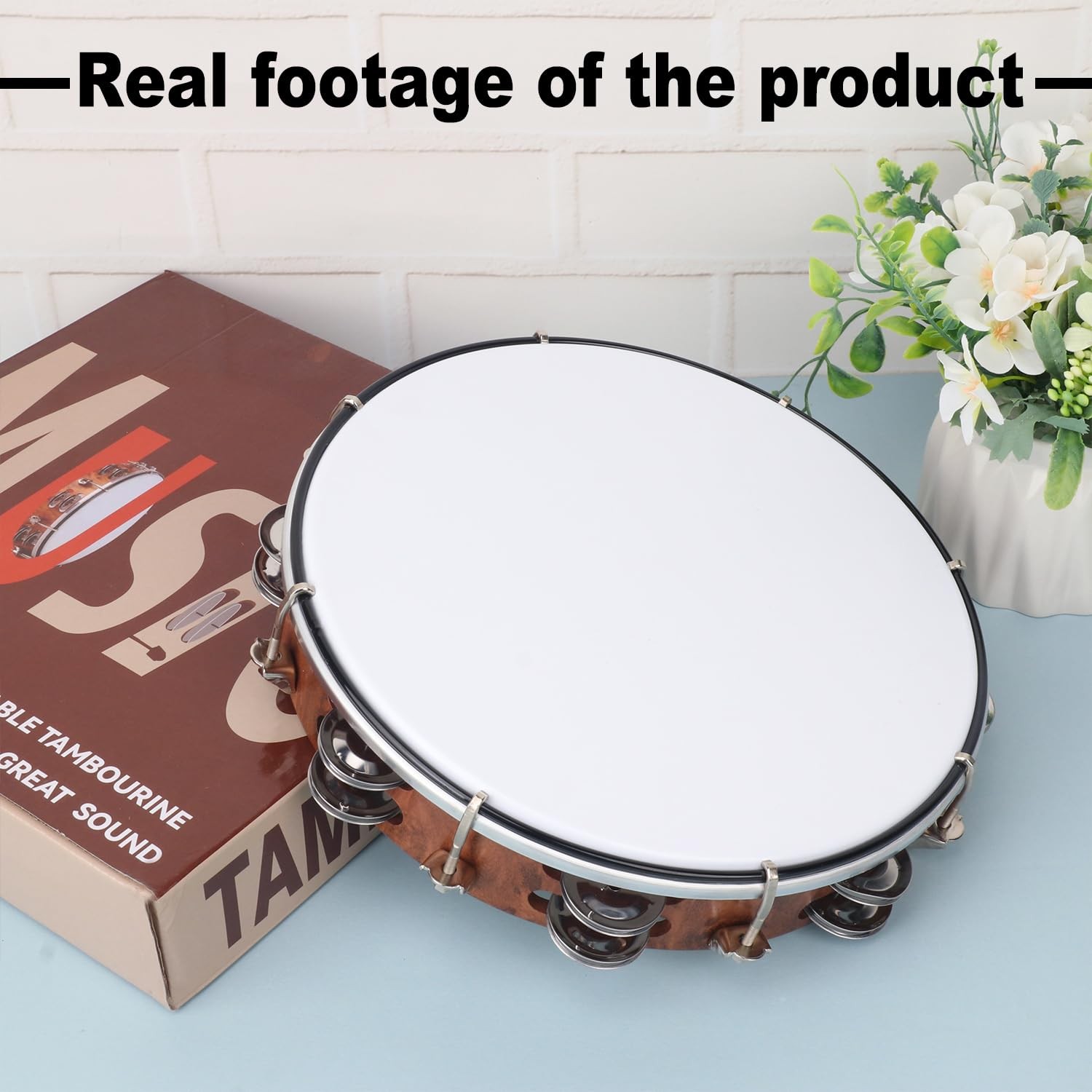 10 Inch Tambourine for Adults, Musical Percussion Instrument Drum with Double...