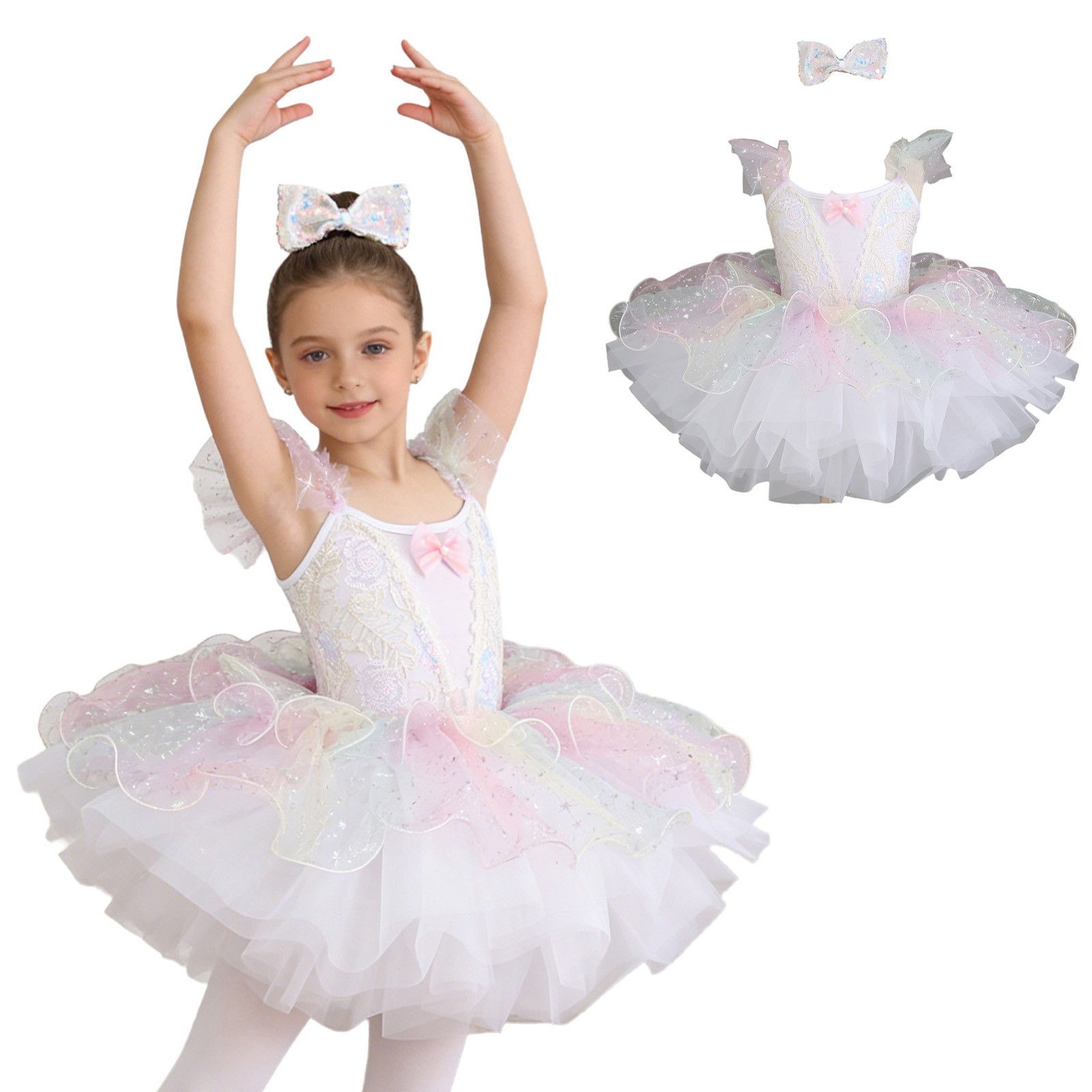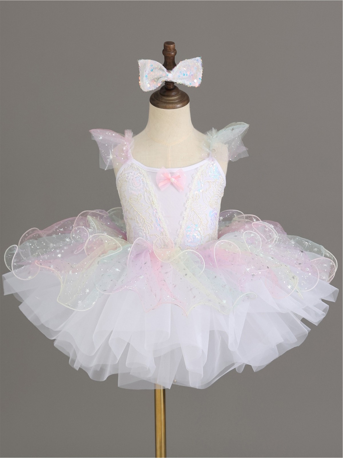 Girls Tutu Dress Dance Ballet Latin Skirted Sports Outfits With Headwear Show