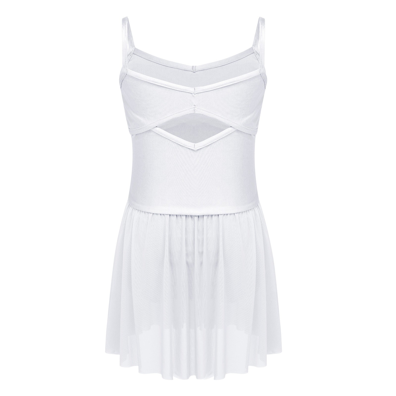 Girls Figure Skating Dress Kids Lyrical Dance Stage Performance Romper Mesh