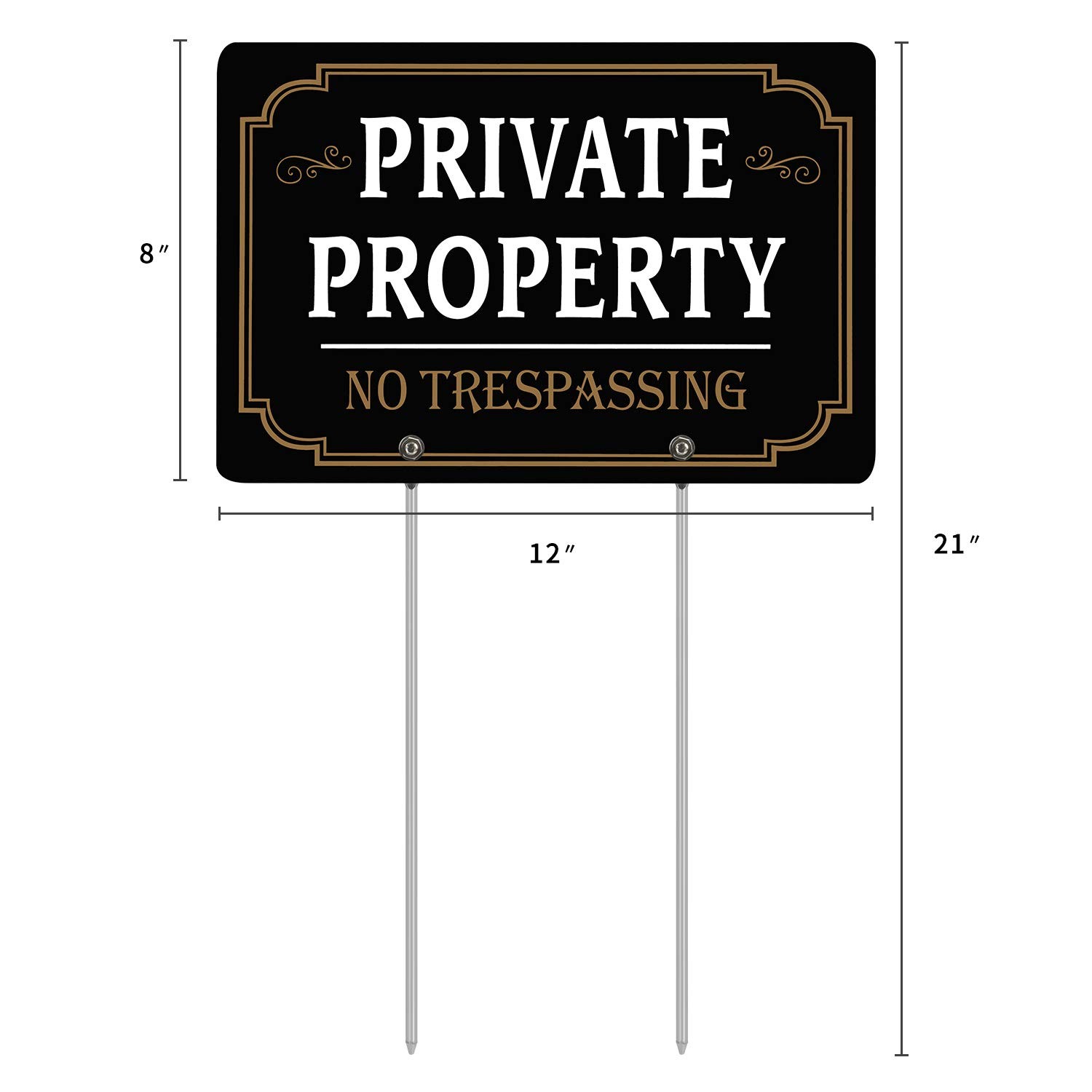 2Pack Private Property Signs, 12 x 8 No Trespassing 21x12 Inches, Black