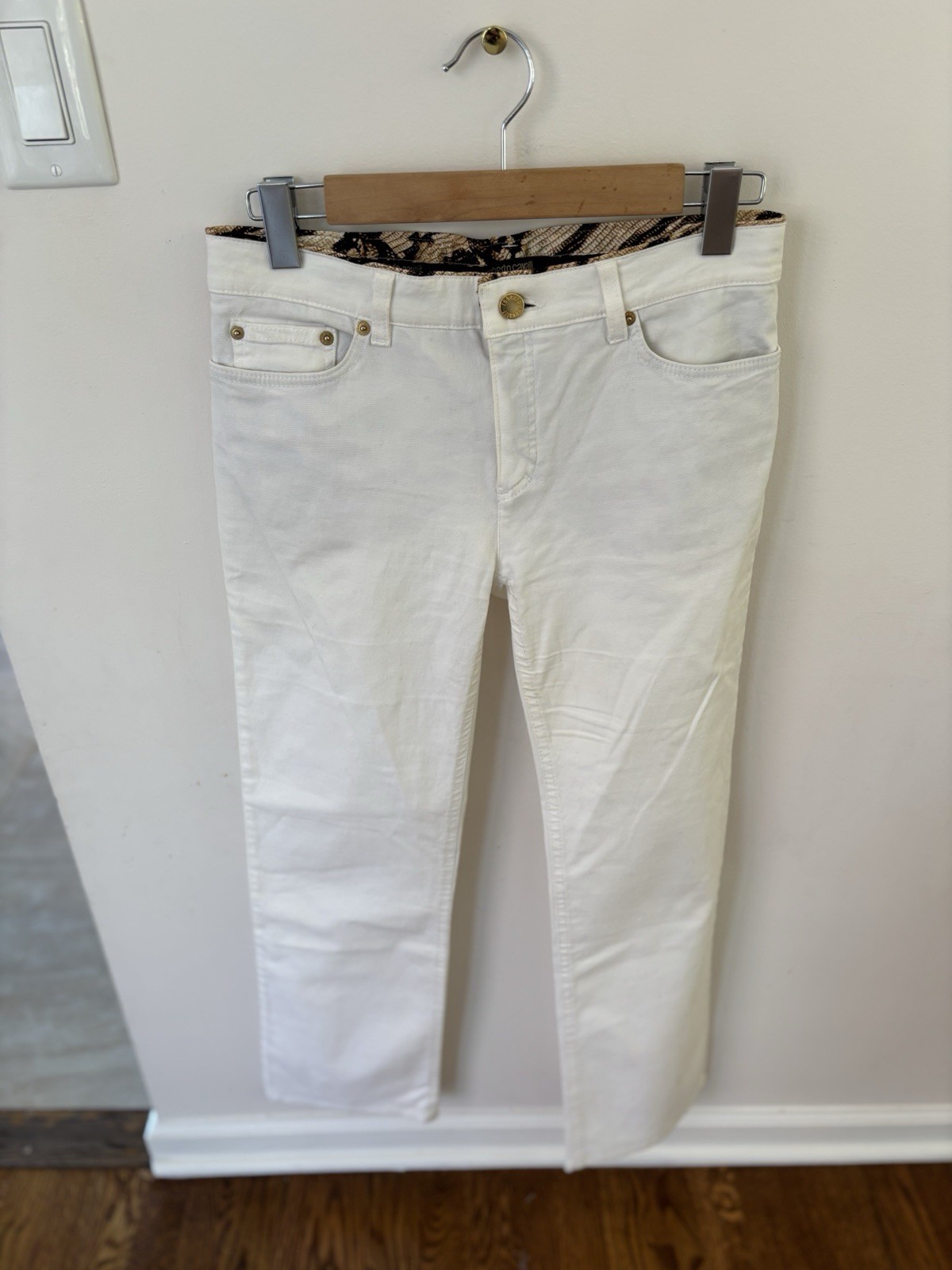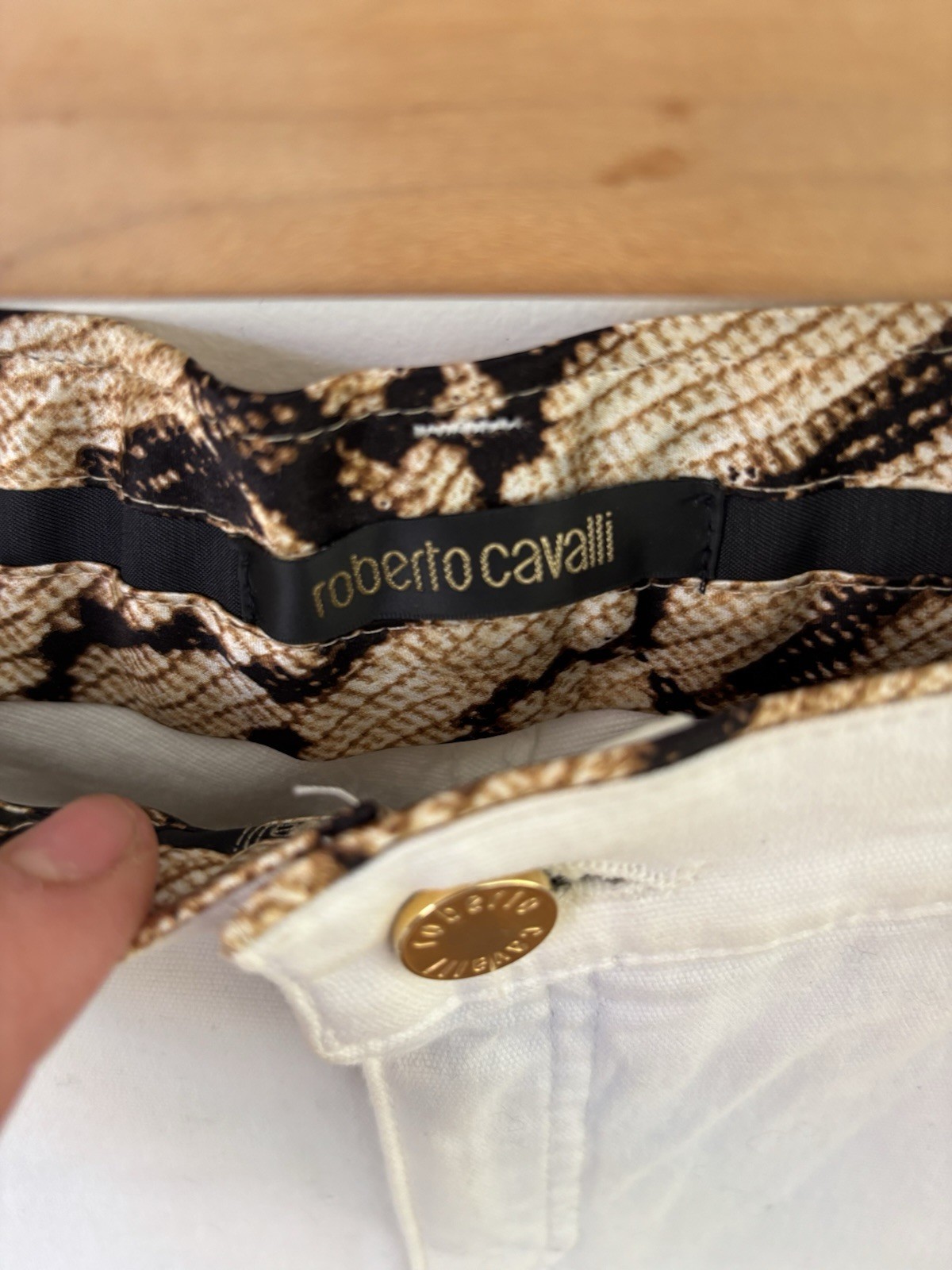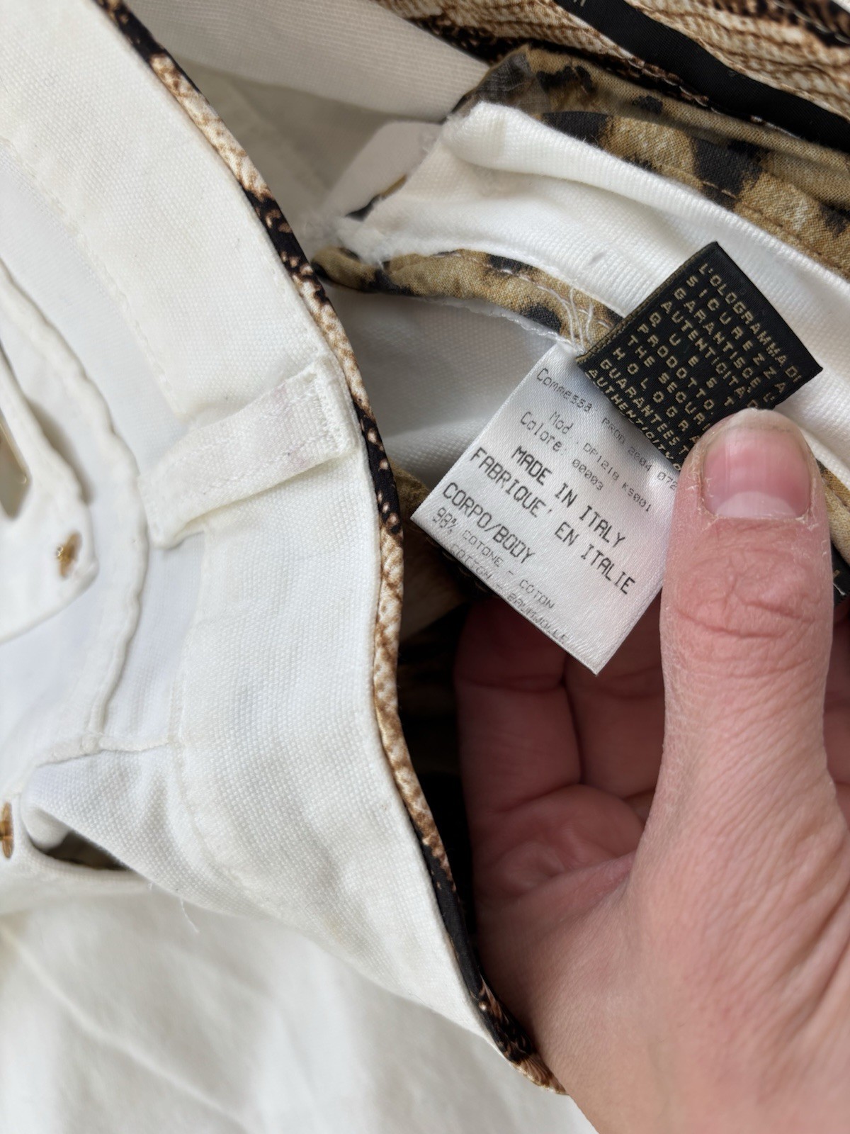 как выглядит Roberto Cavalli White Denim Med. Jeans Gold Plate Logo Pocket Designer Italy Y2K фото