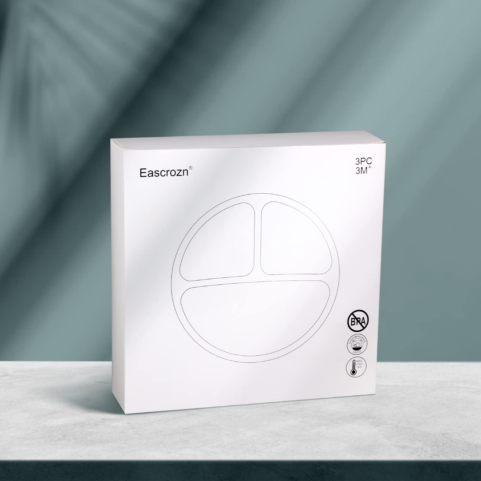 Eascrozn Toddler Plates 3 Pack, Divided Suction 3 Count Pack of 1 , Blue