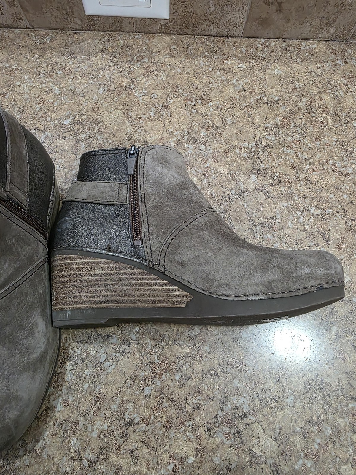 как выглядит Dansko Ankle Booties Womens 9.5 Brown Suede Wedge Zip Buckle Comfort Casual фото