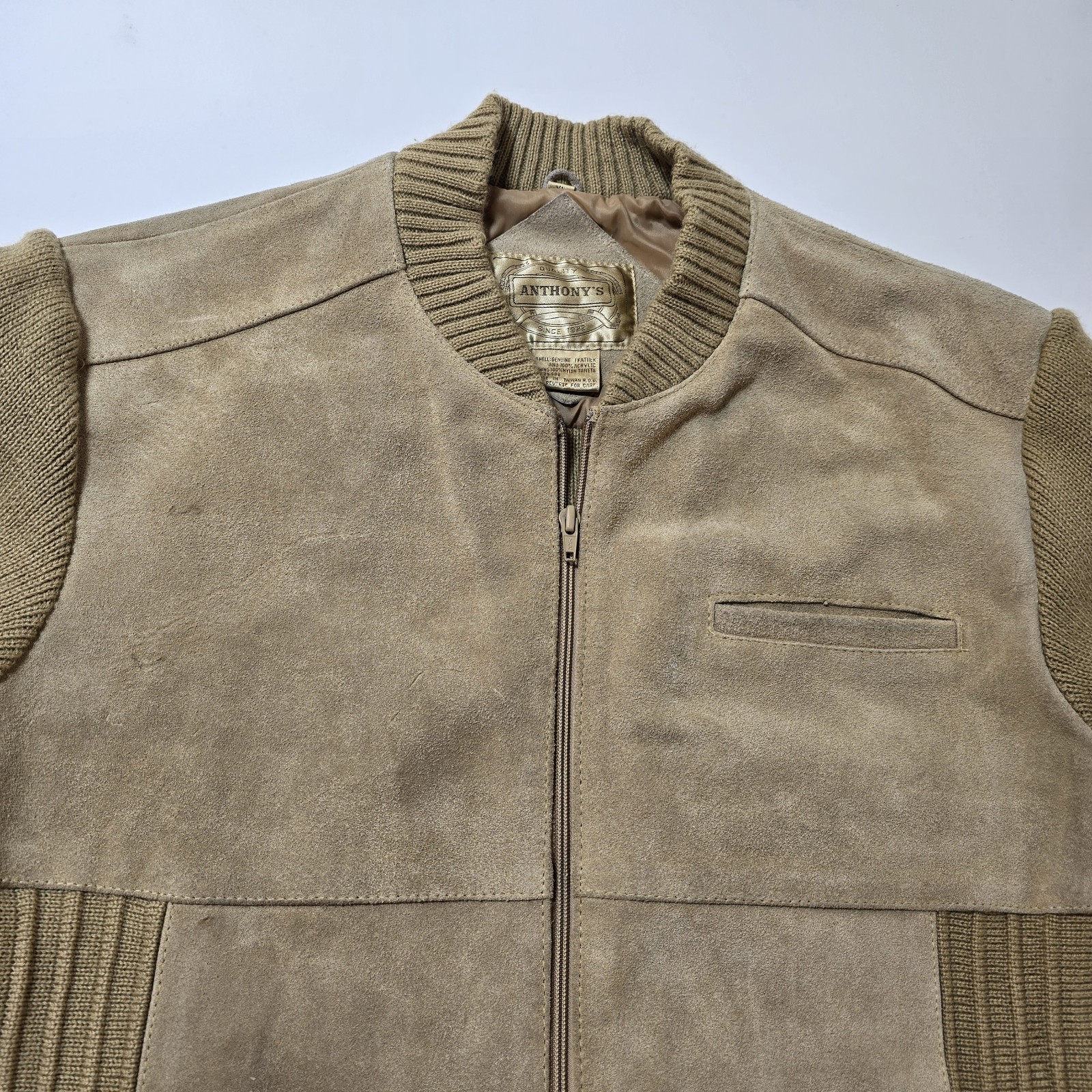 Vintage Anthonys Jacket Leather Suede Sweater Rockabilly Hipster 60s 70s Mens XL