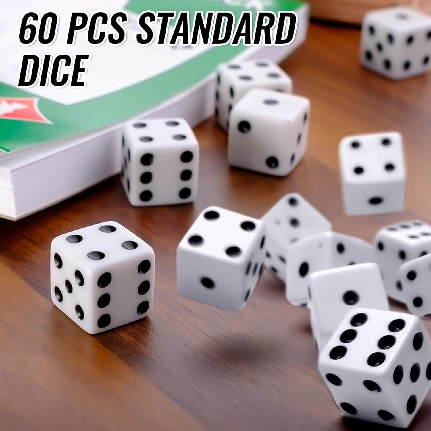 60 Pieces Standard Dice, 16mm Bulk White Opaque Black Pips Six Sided Dice Set...