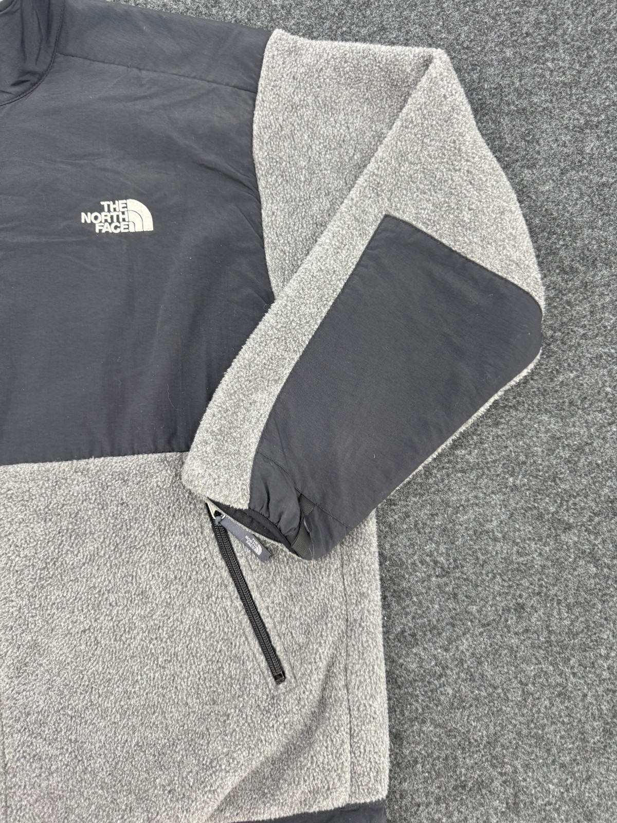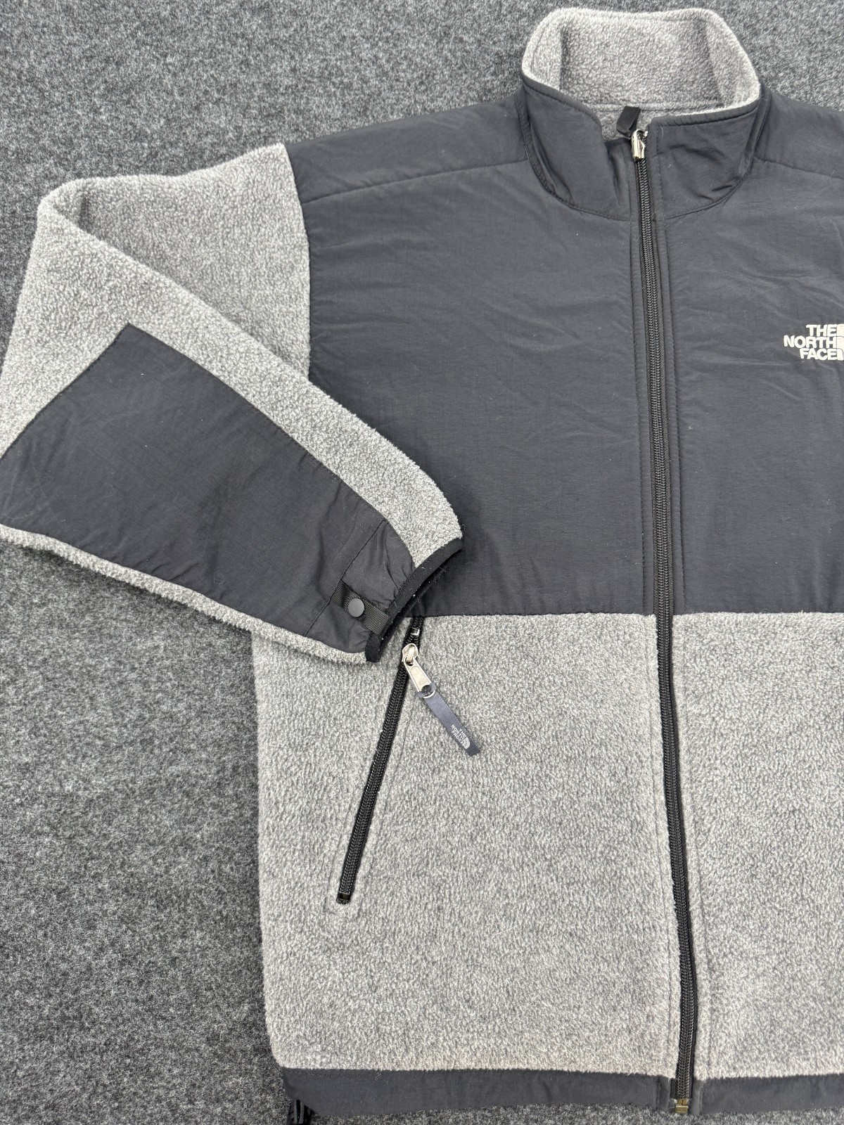 как выглядит The North Face Polartec Fleece Jacket Youth XL Gray Black Colorblock Full Zip фото