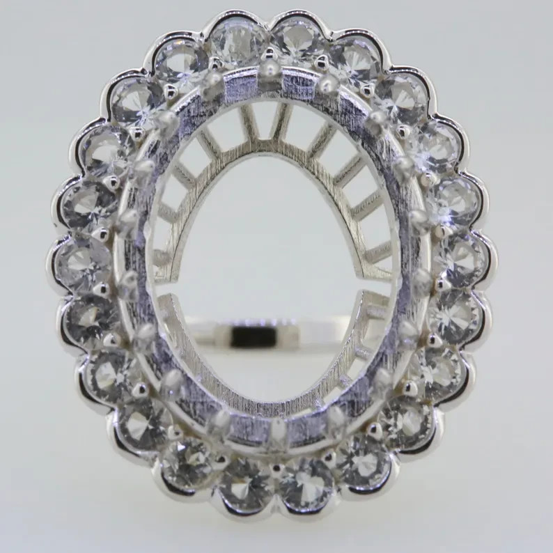 925 Sterling Silver Semi Mount Ring Setting Oval OV 20x15mm White Topaz Halo
