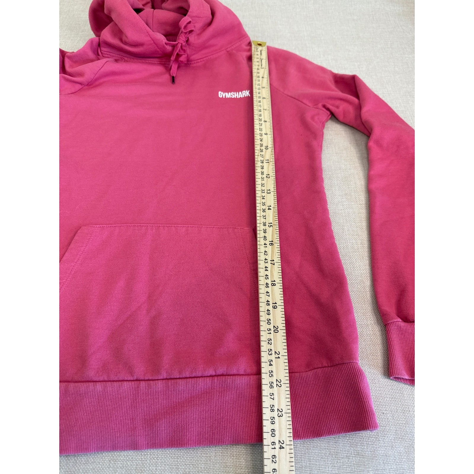 как выглядит Gymshark Womens Pink Pullover Hoodie Sweatshirt Kangaroo Pocket Logo Small Mark фото