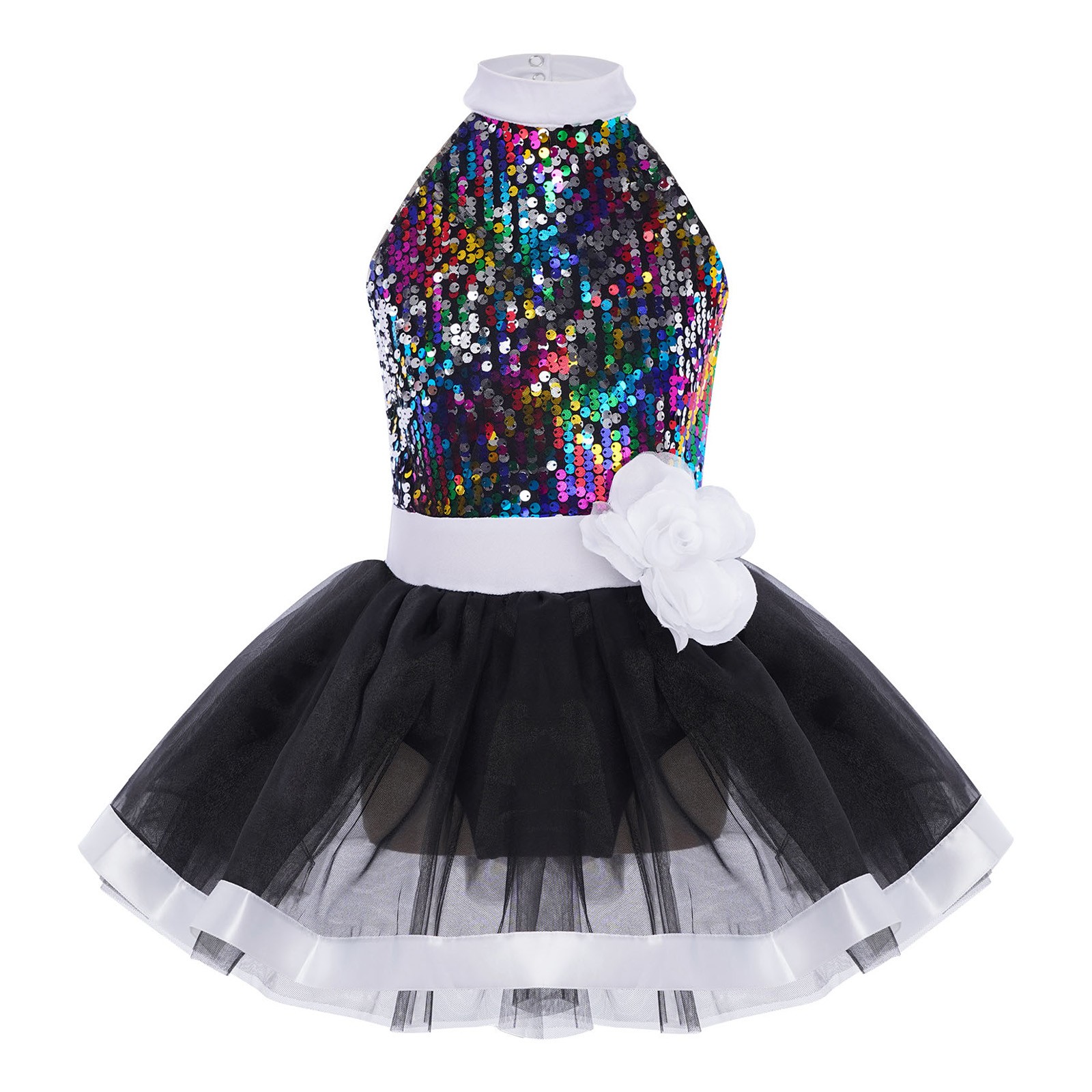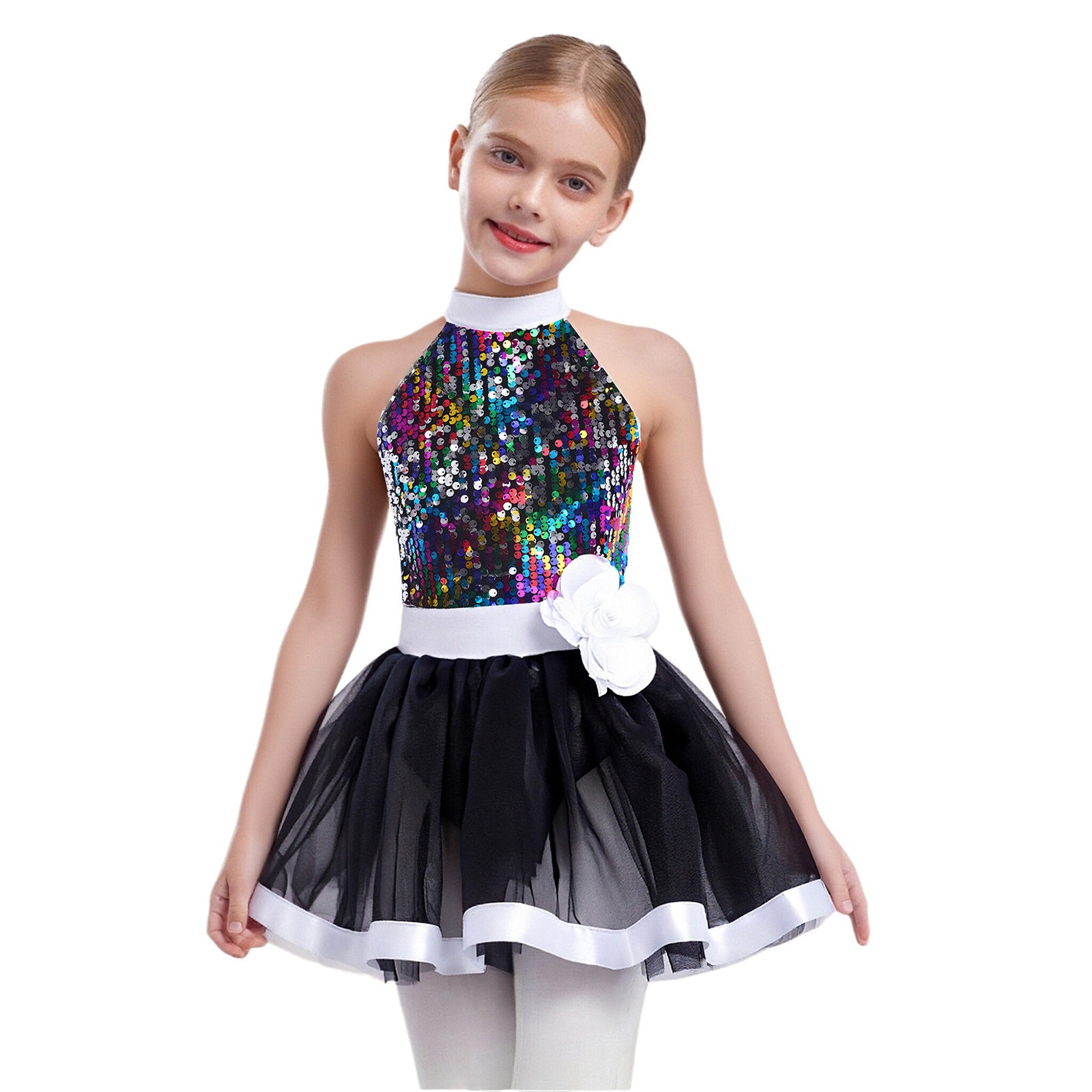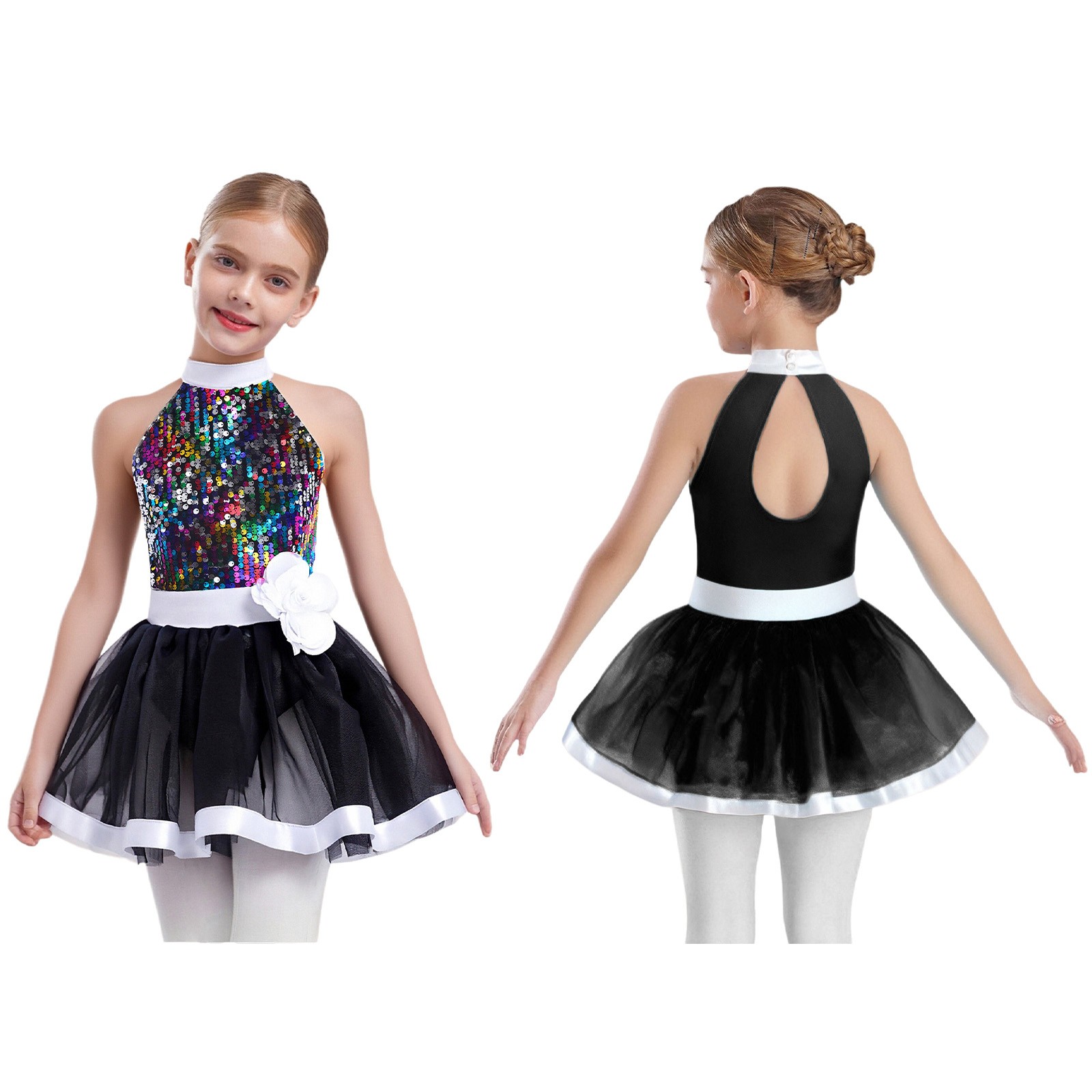 US Girls Ballet Dance Dress Sequins Flower Tulle Skirt Figure Skating Leotard