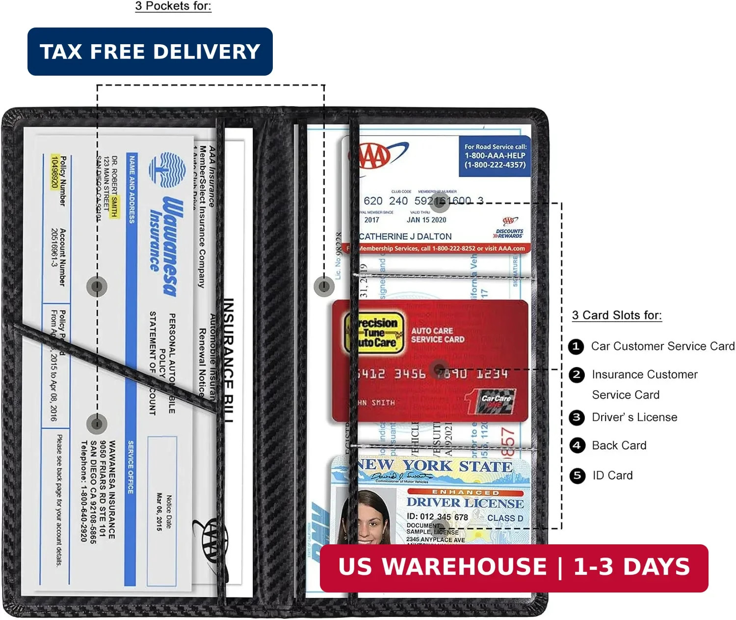 Included Components: Car Registration and Insurance Card Holder