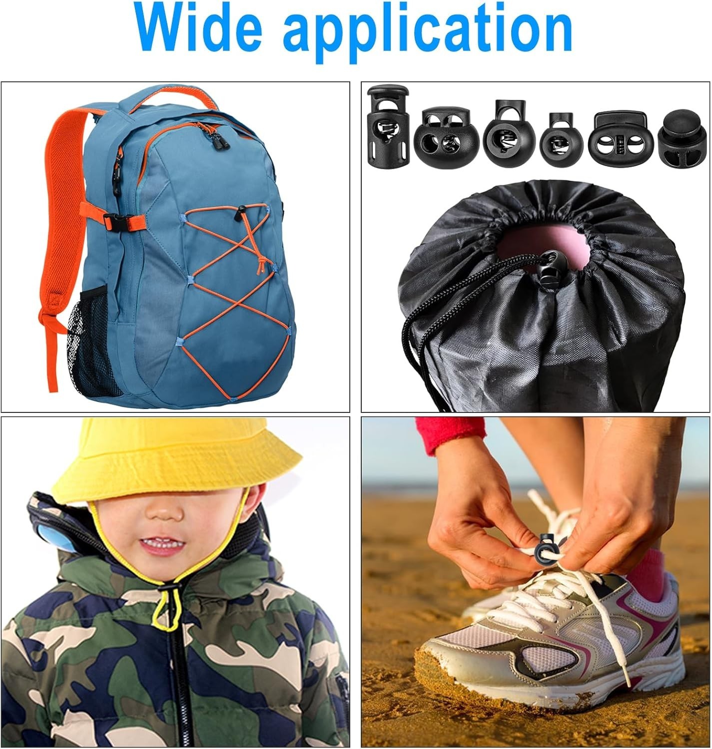 как выглядит 110Pcs Plastic Cord Locks for Drawstrings, Clips, Spring Toggle Stoppers 6 Size фото
