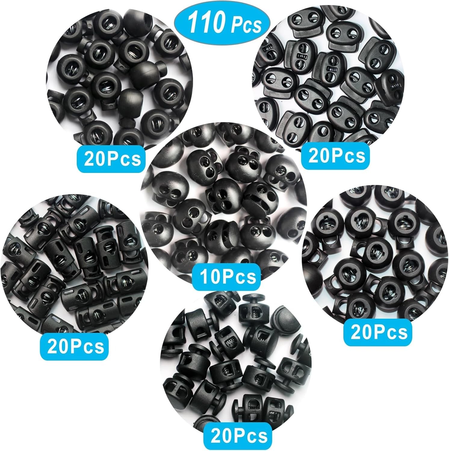 110Pcs Plastic Cord Locks for Drawstrings, Clips, Spring Toggle Stoppers 6 Size