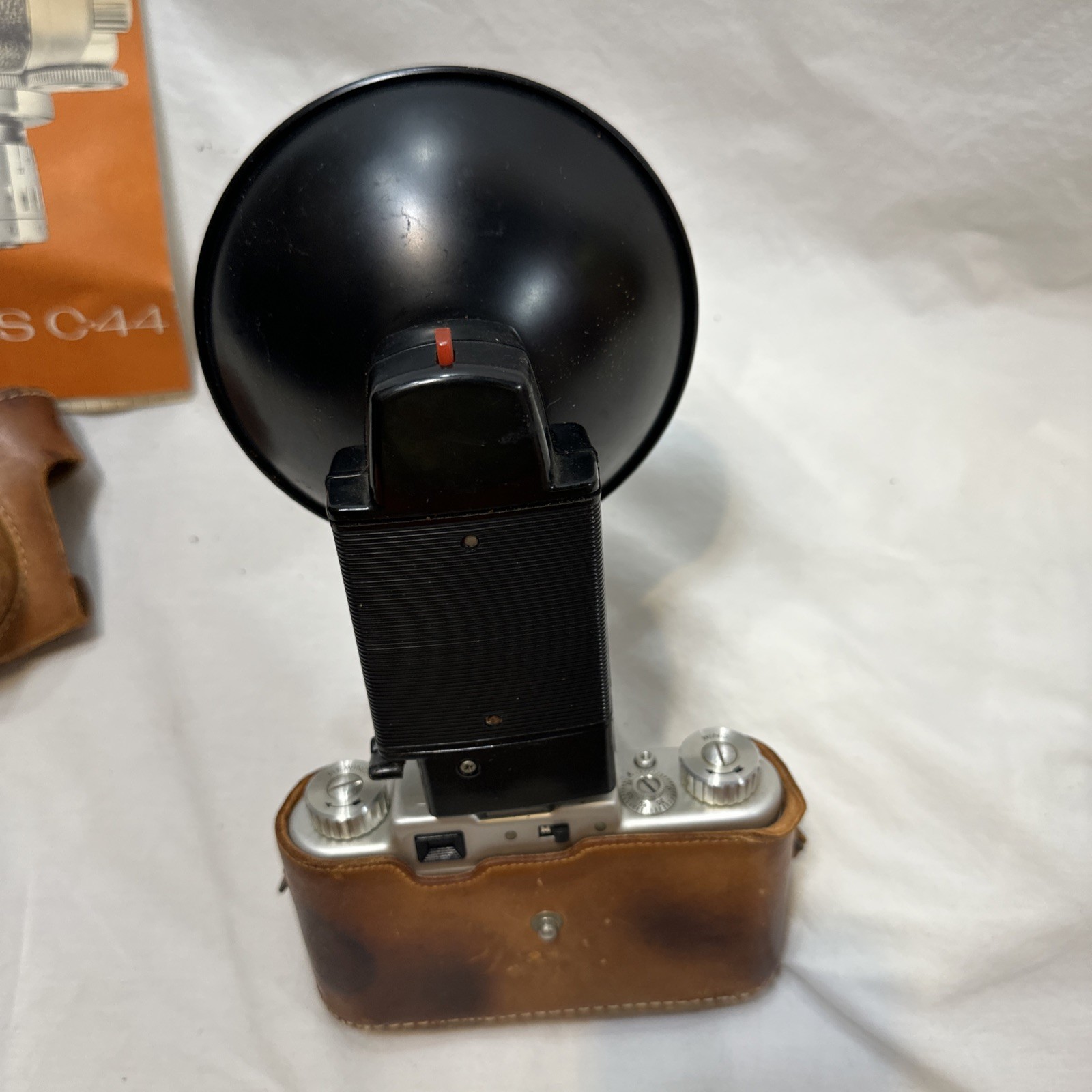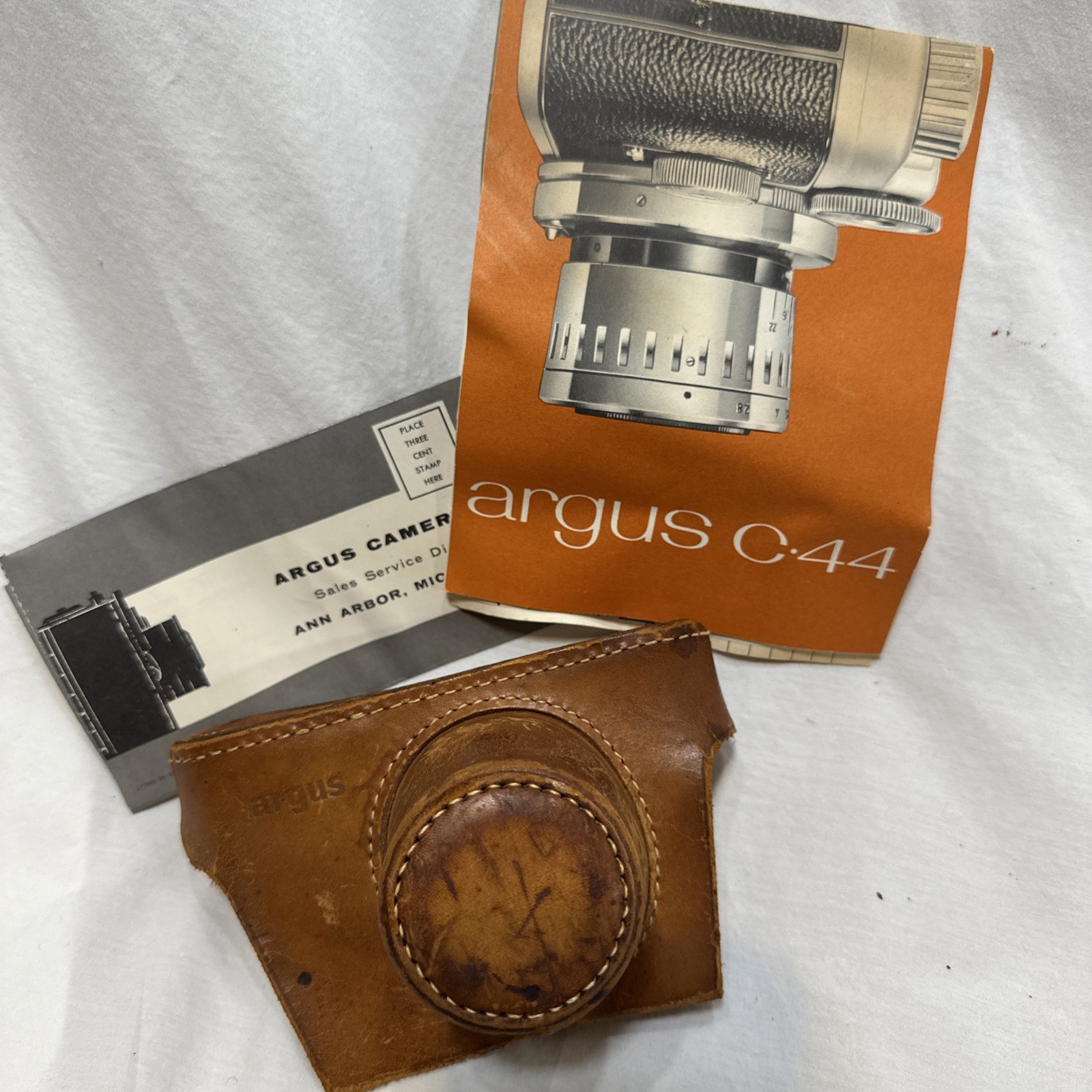 Vintage 35mm Argus C-44 Camera w/ Leather Case, Manual, Flash Attachment Bulbs