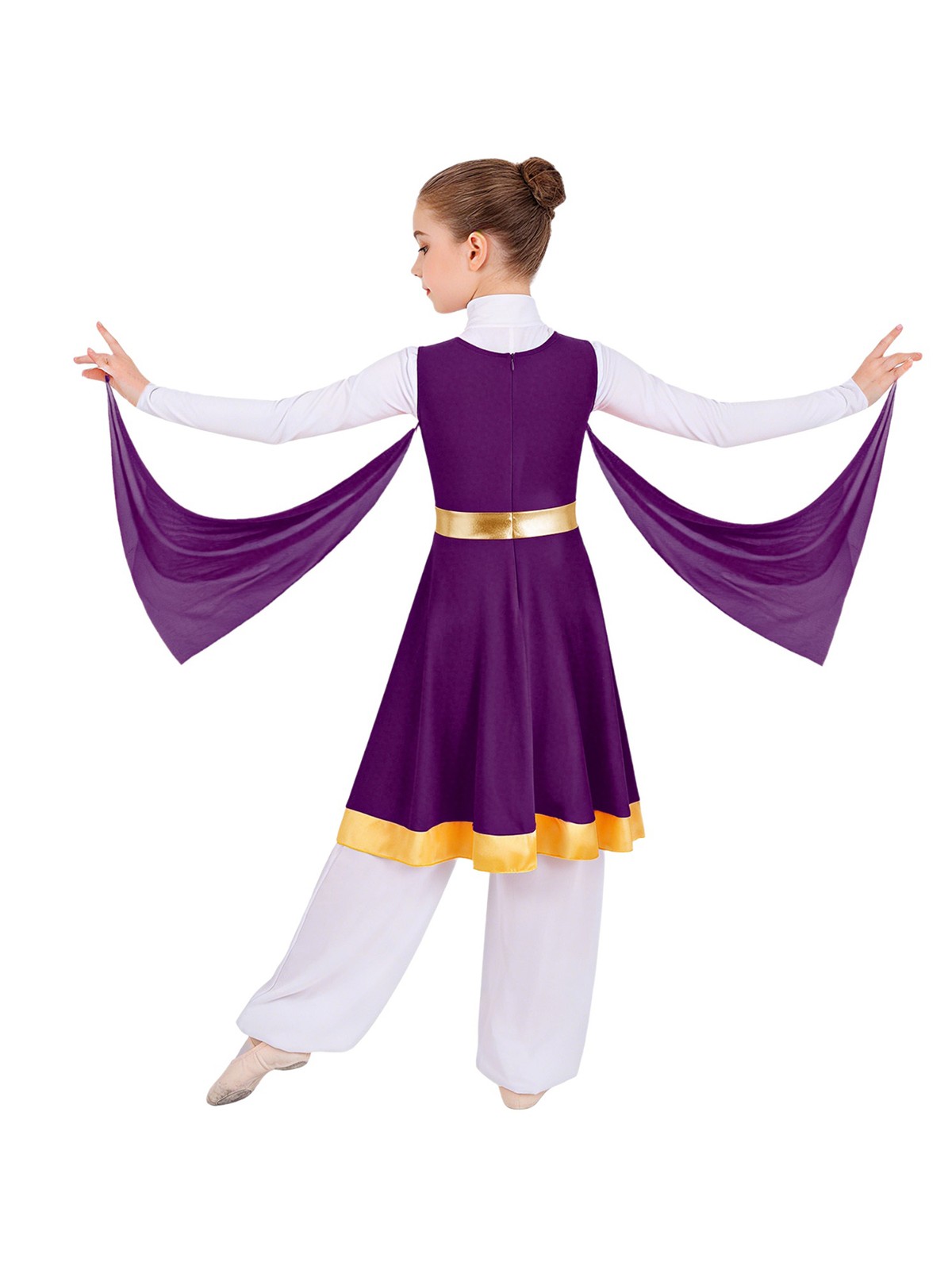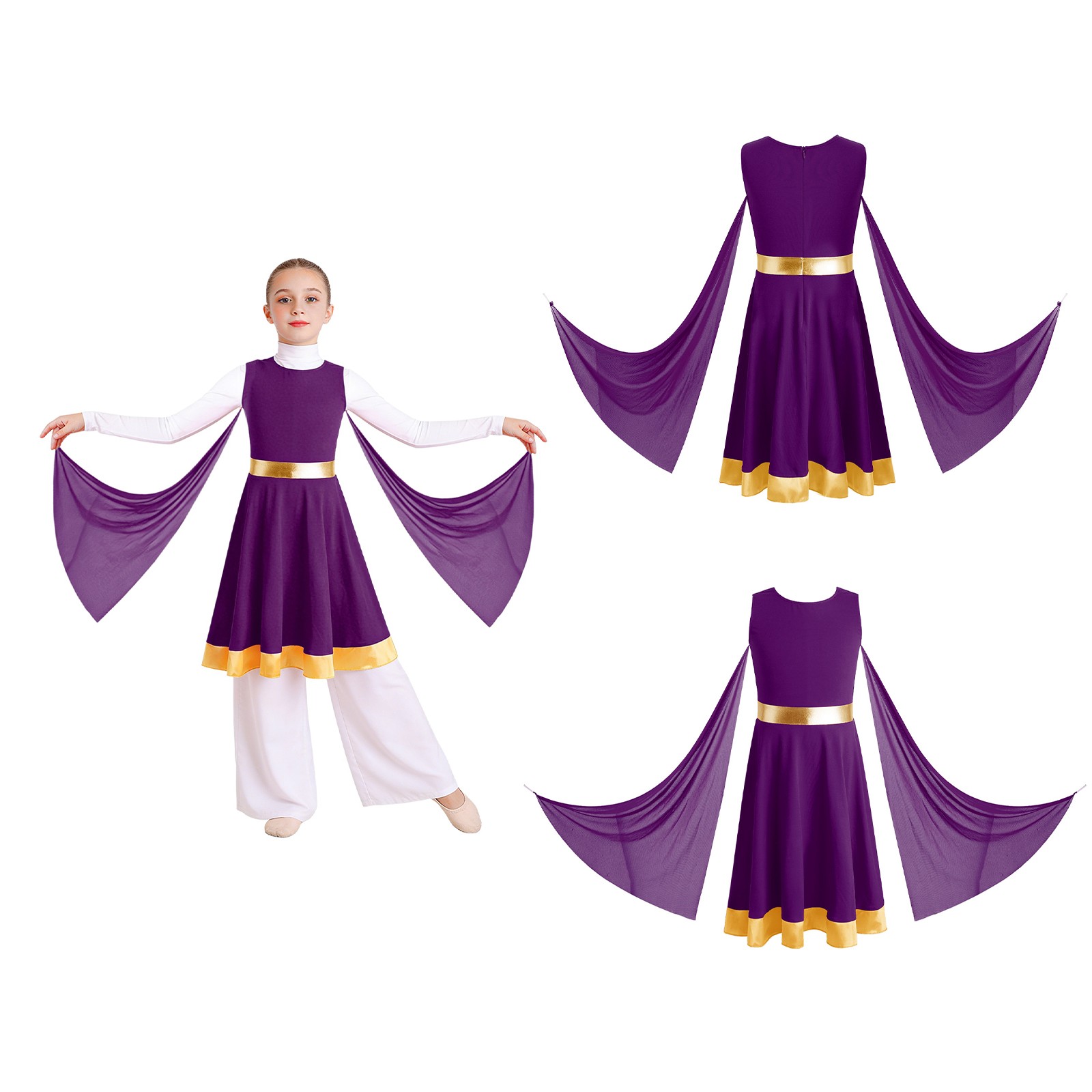 Kids Girls Dress Dancewear Costume Waist Robe Competitions Dance Tunic Praise