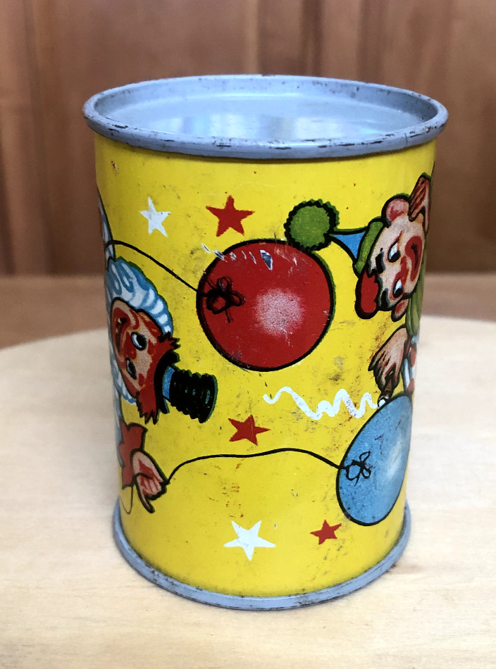 Tin Toy Noisemakers Circus Clown Dancing Theme - Mid Century 1950s