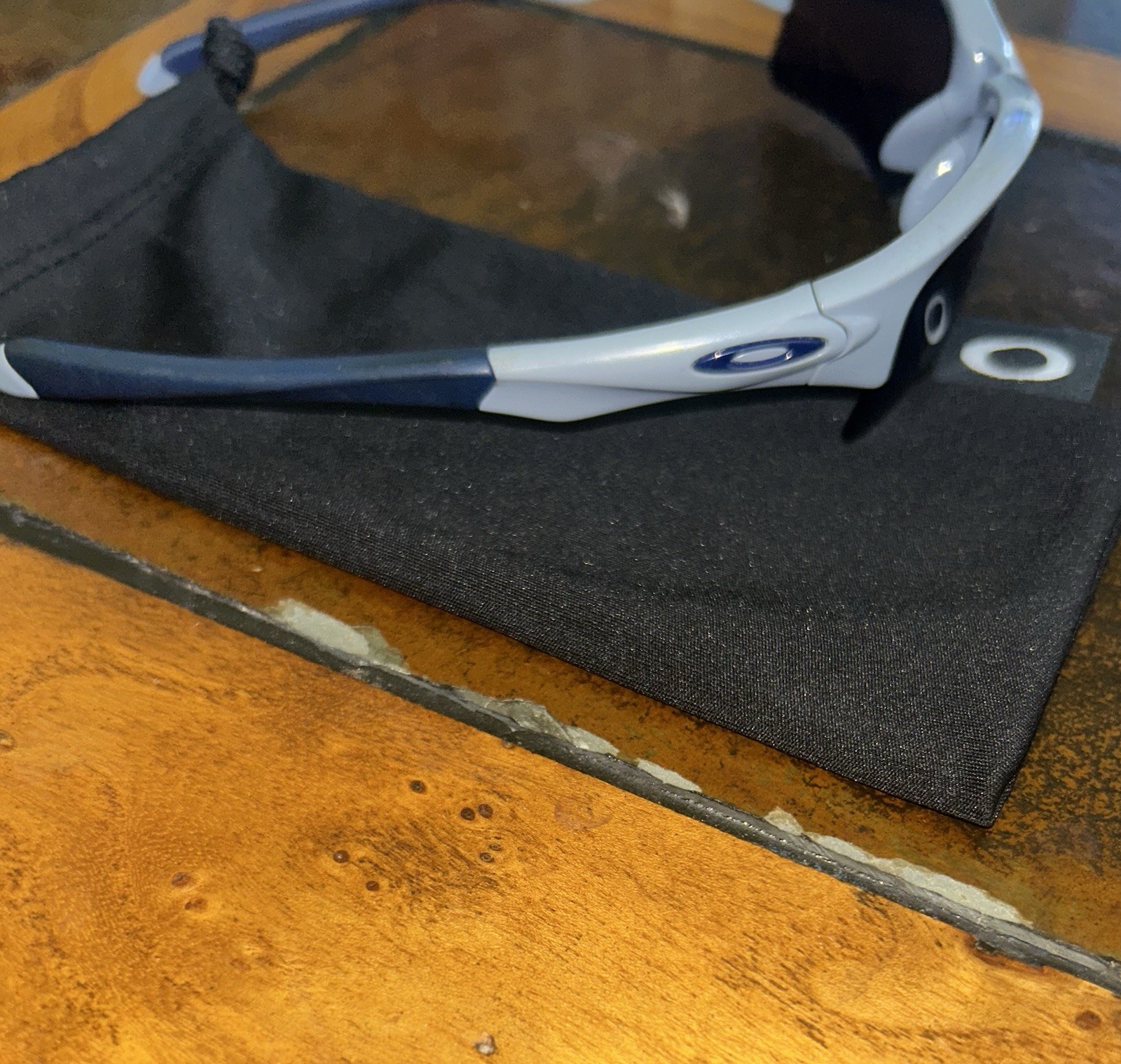 Oakley quarter jacket, gray frame, navy ear, socks and nose pads, black lenses