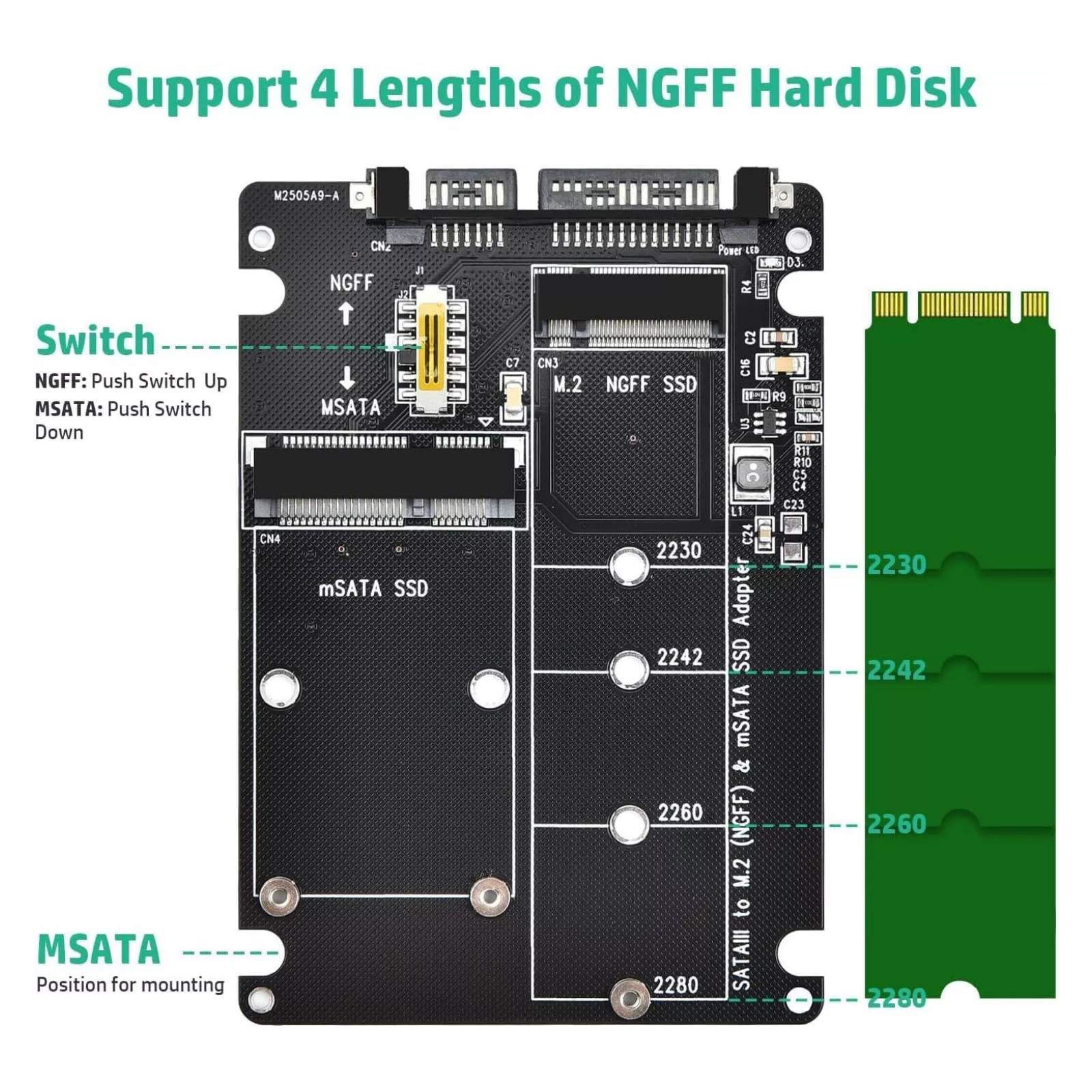 MSATA/M.2 NGFF to SATA III Adapter 2 in 1 Converter For Convenient Switch Design