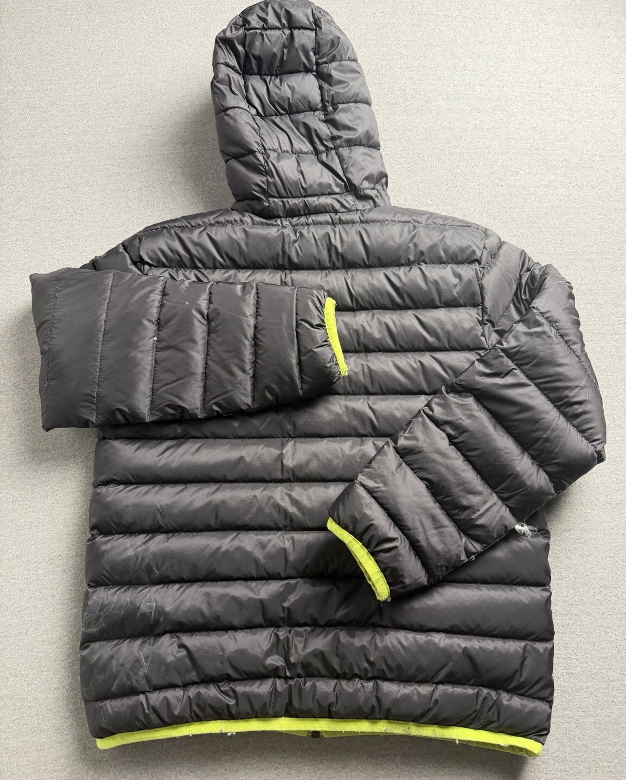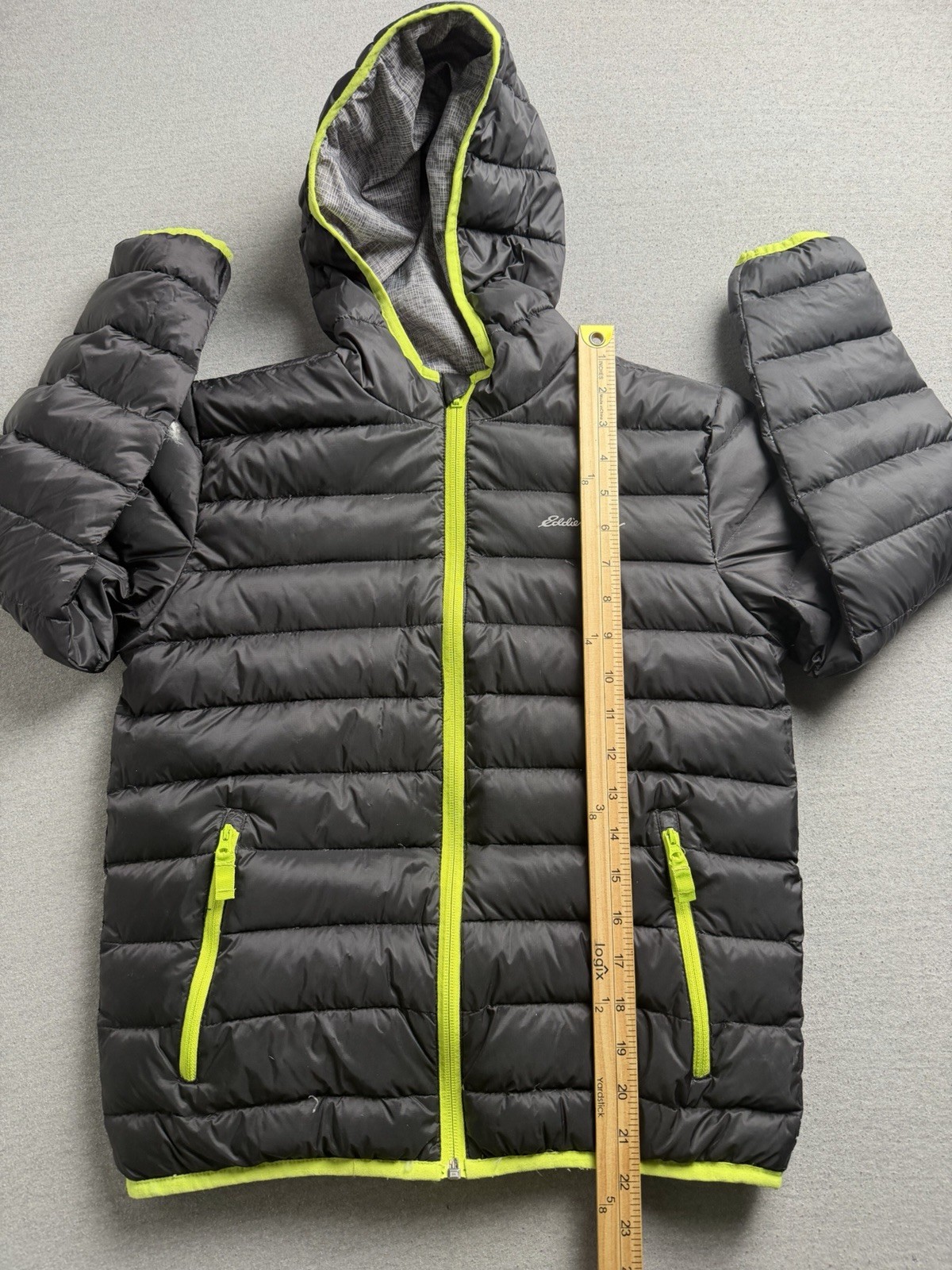 как выглядит Eddie Bauer Jacket Youth M 10/12 Black Gray Reversible Hooded Down Puffer фото