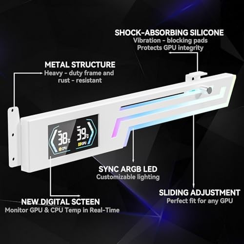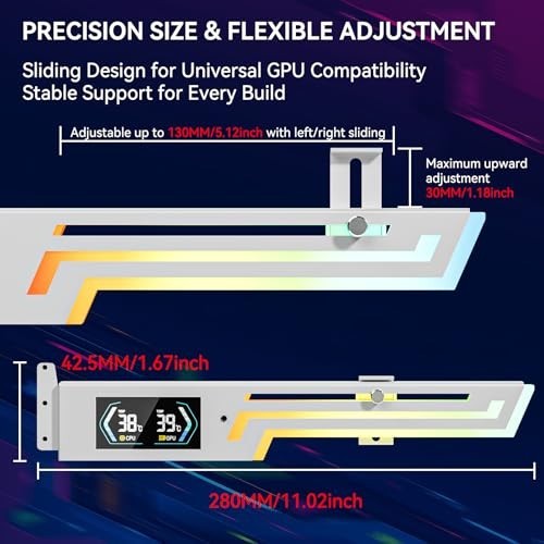 Adjustable ARGB GPU Support Bracket with Temp Display - Anti Sag Graphics Card S
