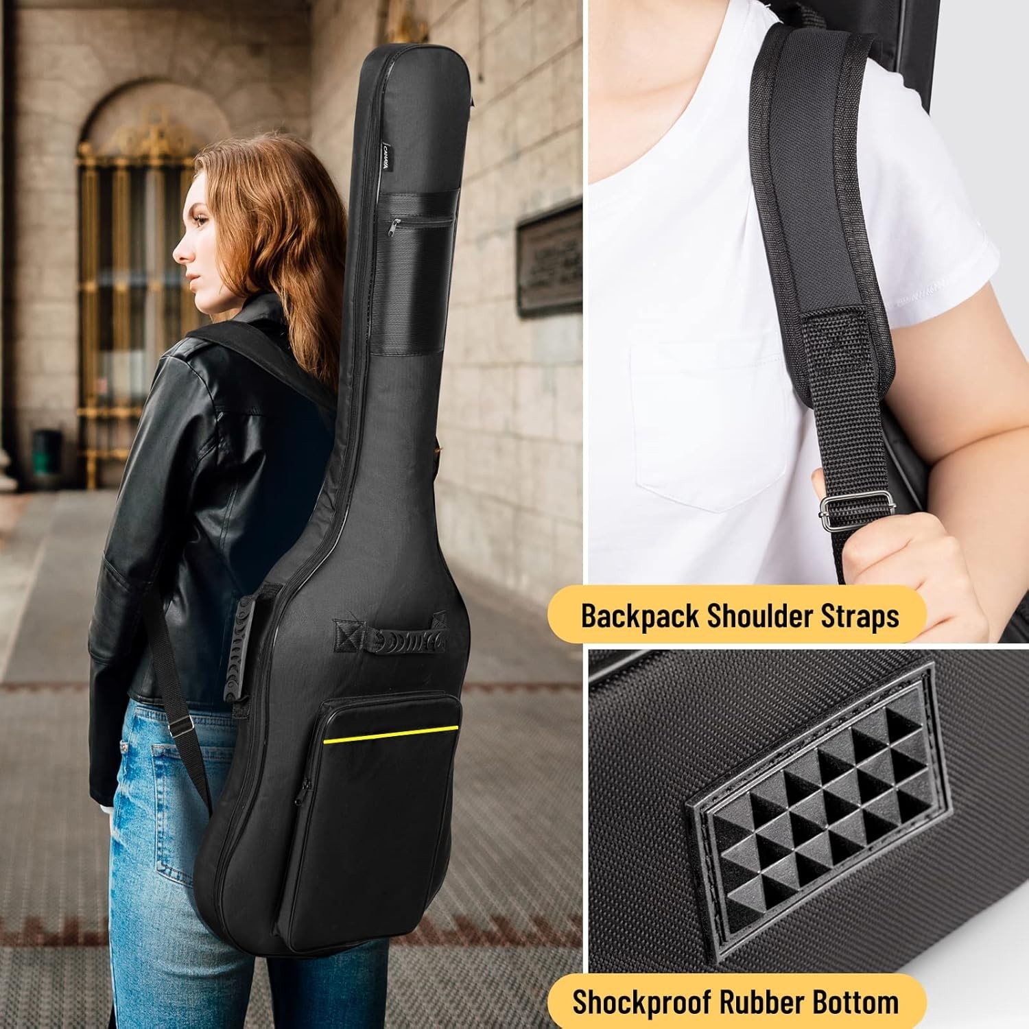 Bass Guitar Bag Gig Bag 0.3in Padding Black Padded Backpack Soft Electric Bas...