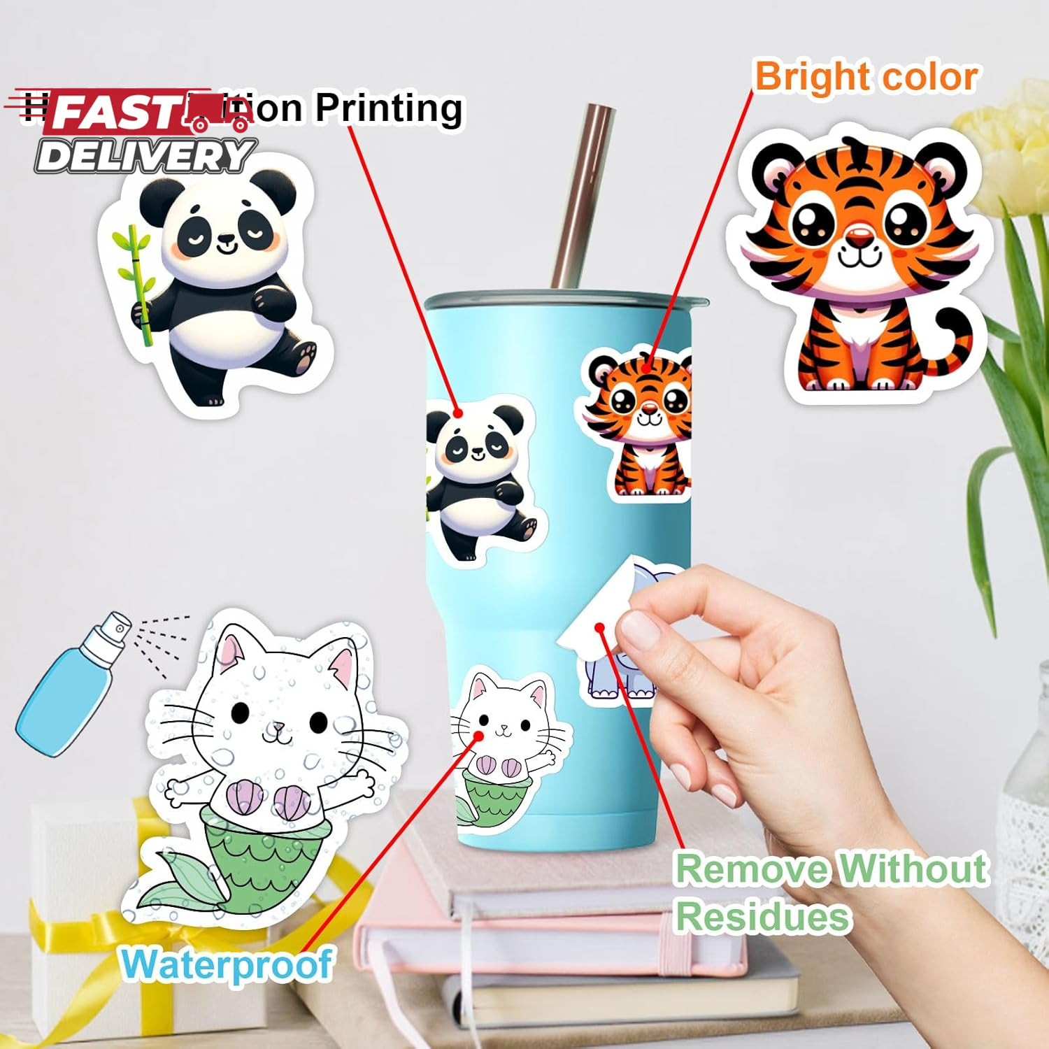 100 PCS Water Bottle Stickers For Kids Waterproof Vinyl Animal Stickers Kids New