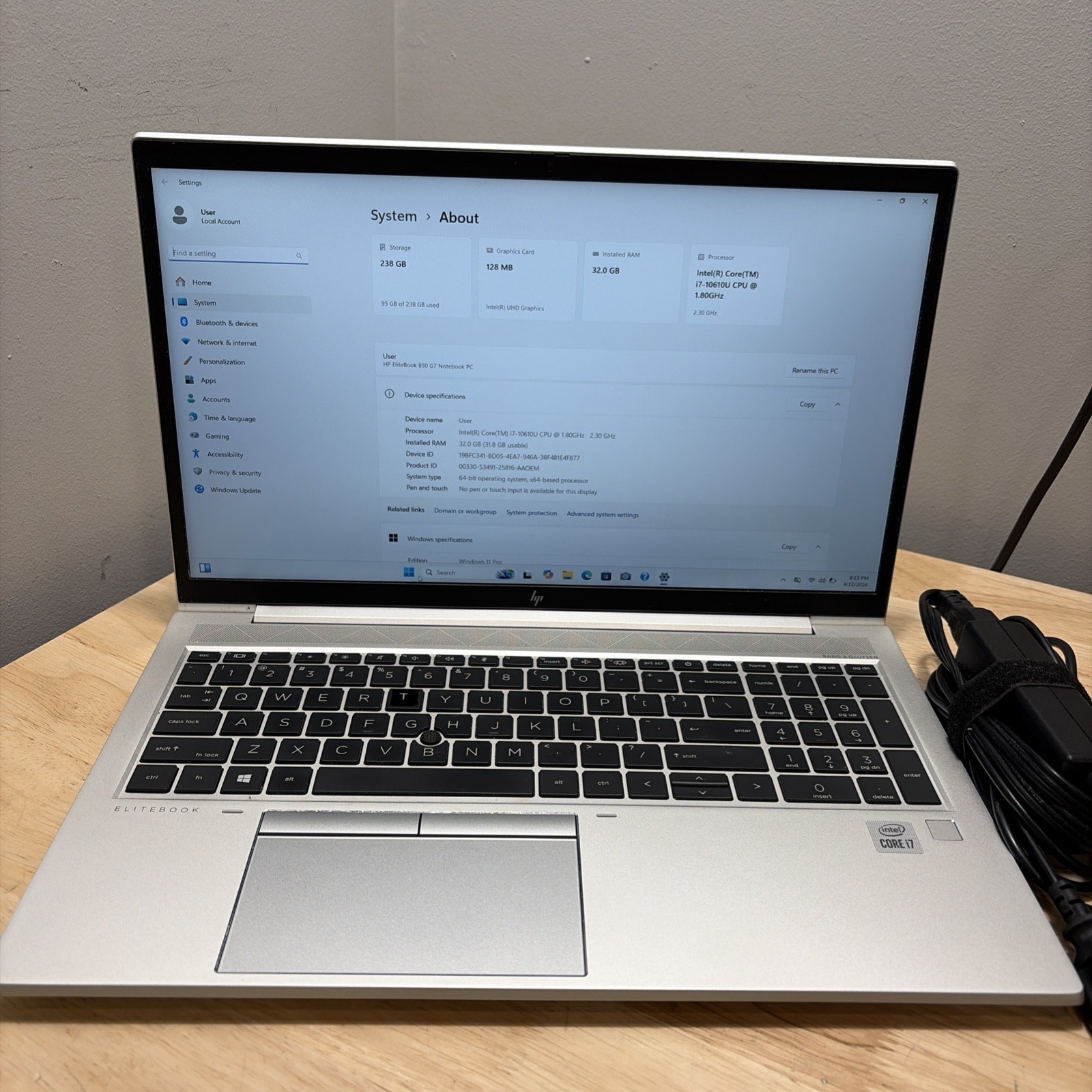 HP EliteBook 850 G7 CORE I7-10610U 1.8GHZ 32GB 256GB SSD WCAM WIFI W11 CORD