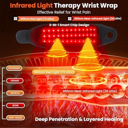 Rechargeable Red Light Therapy Wrist Wrap - 36 LEDs, Soothing Heat for Joint M
