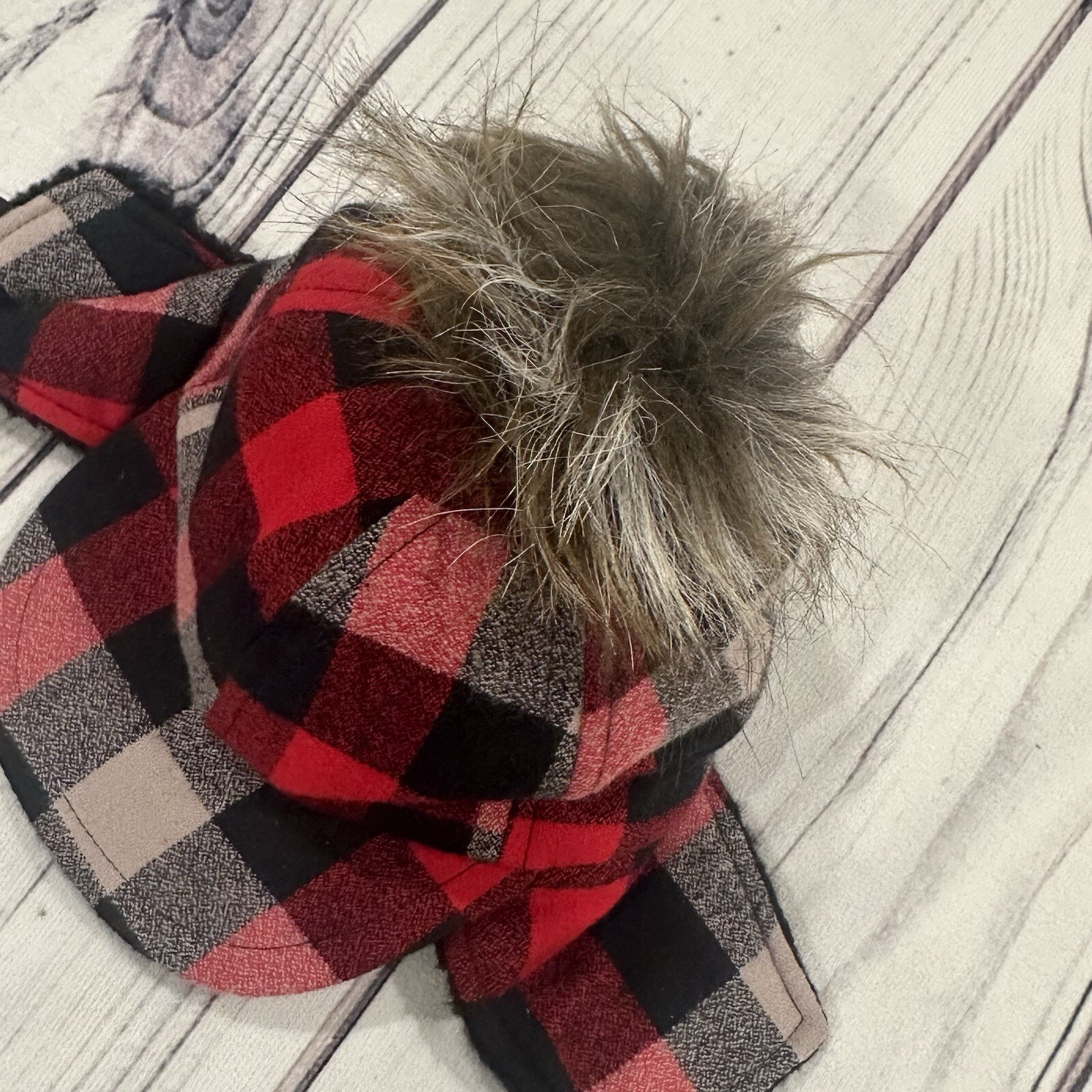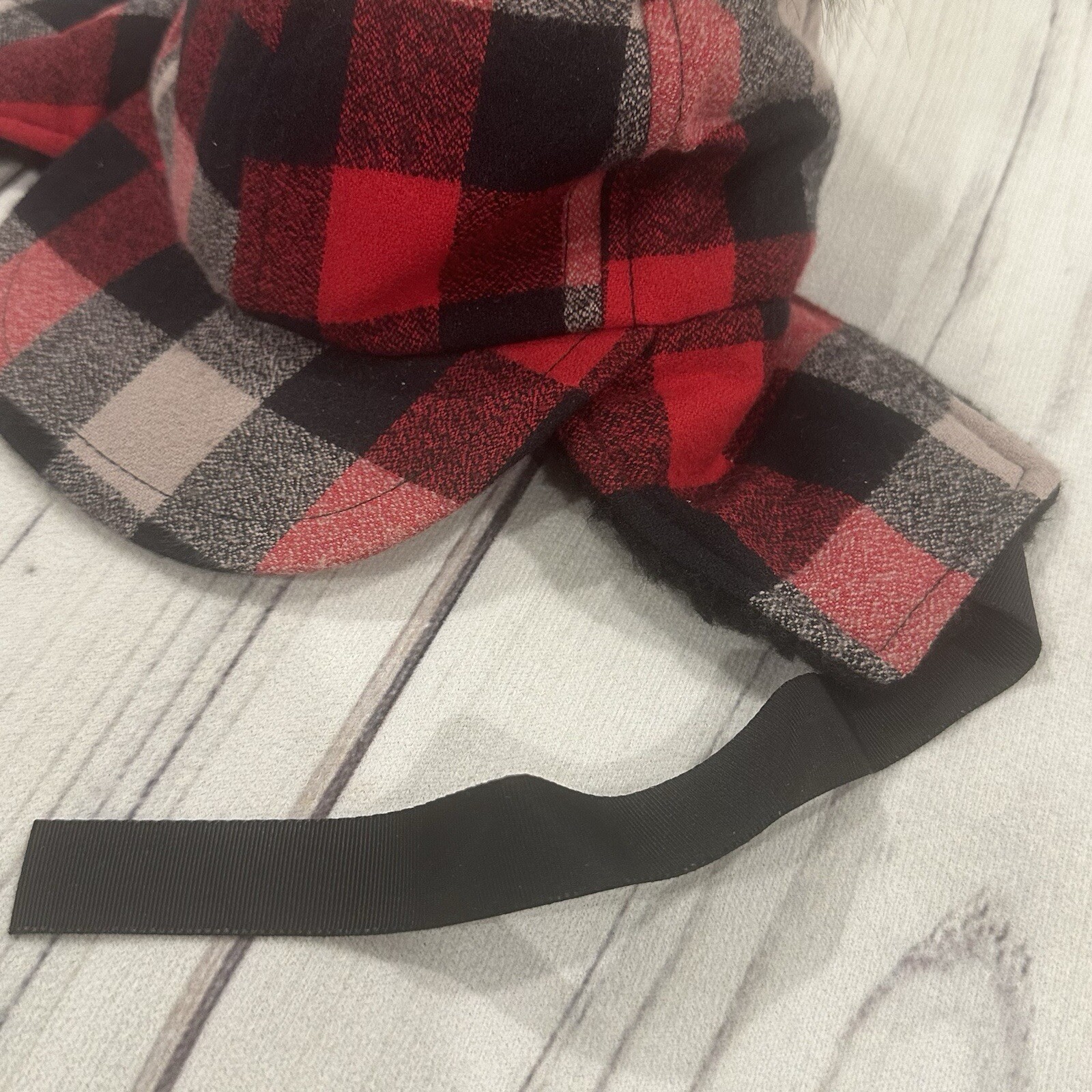 George Hat Black Red Buffalo Plaid Pom Pom Size Infant Christmas Winter