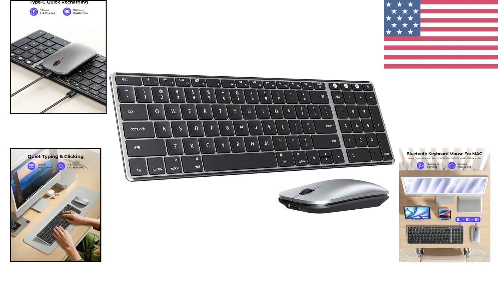 Portable 3-Device Bluetooth Keyboard Mouse Set for Mac and iPad - Eco-Friendly