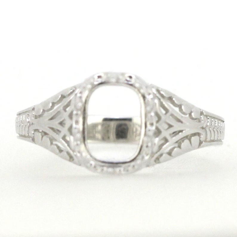 925 Sterling Silver Semi Mount Ring Setting Cushion CU 9x7mm Art Deco Style