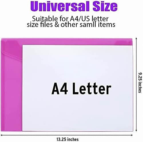 Sooez 12 Pack Plastic Envelopes File Folders, Plastic Folders with Pockets, C...