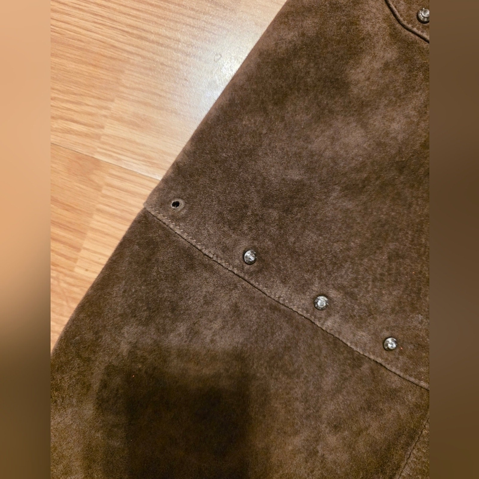 как выглядит Vtg Brown Suede Leather Flare Maxi Skirt Studded Lined Whimsigoth Tiered Sz L фото