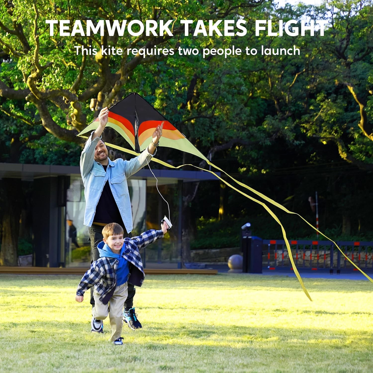 Large Delta Kite Yellow Easy Fly 328ft String for Kids Adults Beach Fun Outdoor