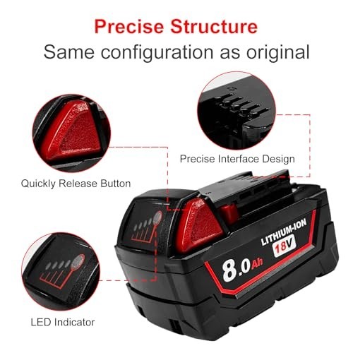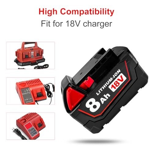 8Ah Replacement Battery for 18V Power Tools - Compatible with Milwaukee 2 PCS